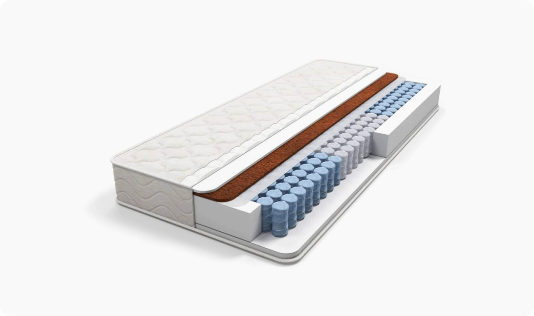 Пружинный матрас своим строением отличается от беспружинного. В его конструкции должны присутствовать четыре компонента: