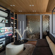 Вместо стандартной кровати в данный проект были поставлены основания Tatami, которые гармонично вписались в интерьер и образовали двухспальную кровать.