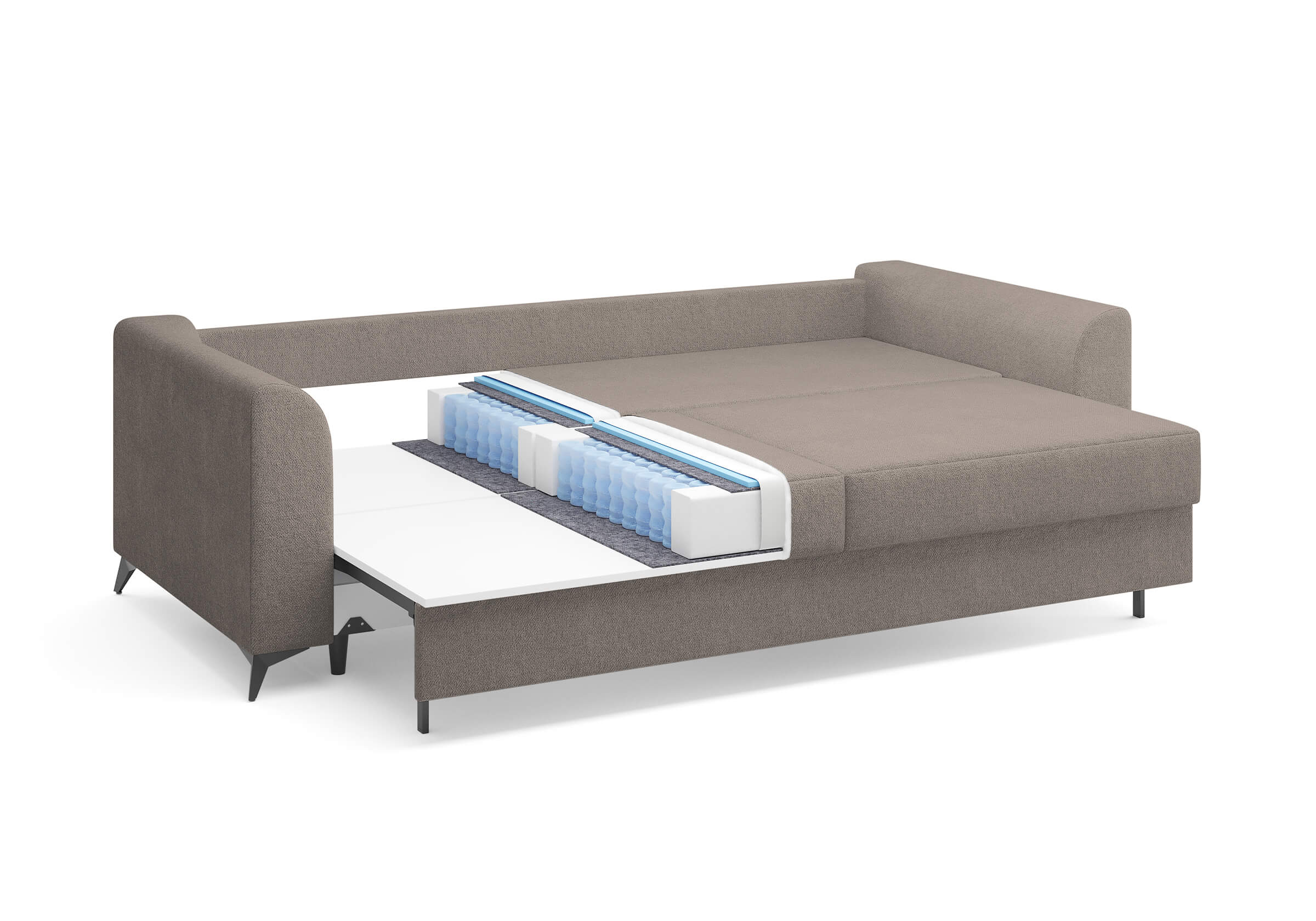 Высокие черные металлические ножки придают дивану не только устойчивость, но и особую выразительность. Этот элемент дизайна подчеркивает современный стиль мебели, добавляя ей уникального шарма и элегантности.