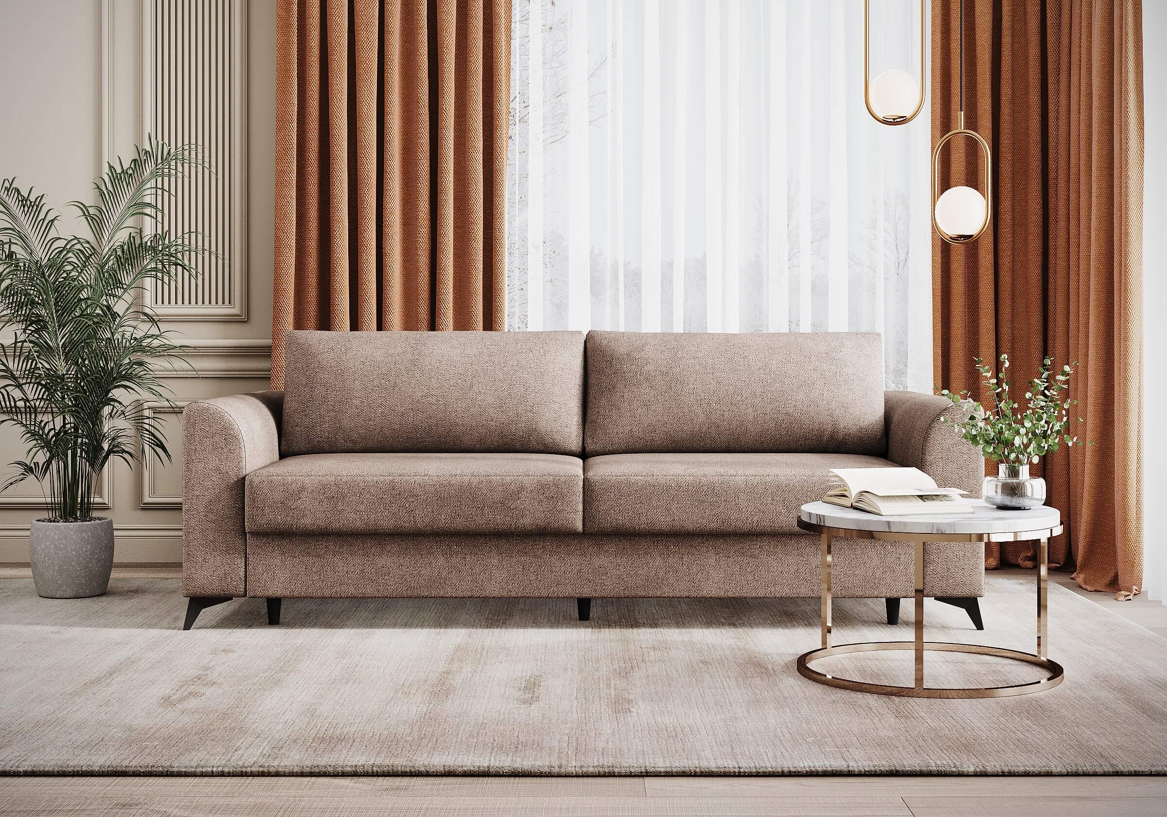 Диван Dario — это воплощение самых актуальных модных тенденций в мире мебели. Его универсальный дизайн позволяет гармонично вписаться в интерьеры различных стилей, таких как современный, арт-деко и модерн. В зависимости от выбранной обивки, диван может стать центральным элементом вашего интерьера, подчеркивая его стиль и индивидуальность. Плавные подлокотники и изящные подушки создают атмосферу уюта и роскоши. Высокие черные металлические ножки добавляют дивану выразительности и современного шарма. Независимый пружинный блок в сочетании с высокоэластичной пеной обеспечивает комфортное спальное место, идеально подходящее для отдыха. Оптимальная глубина и высота сидения гарантируют повседневный комфорт, делая каждое пребывание на диване приятным. Задняя спинка дивана специально разработана для предотвращения загрязнений и повреждений стен, что продлевает срок службы вашего интерьера.