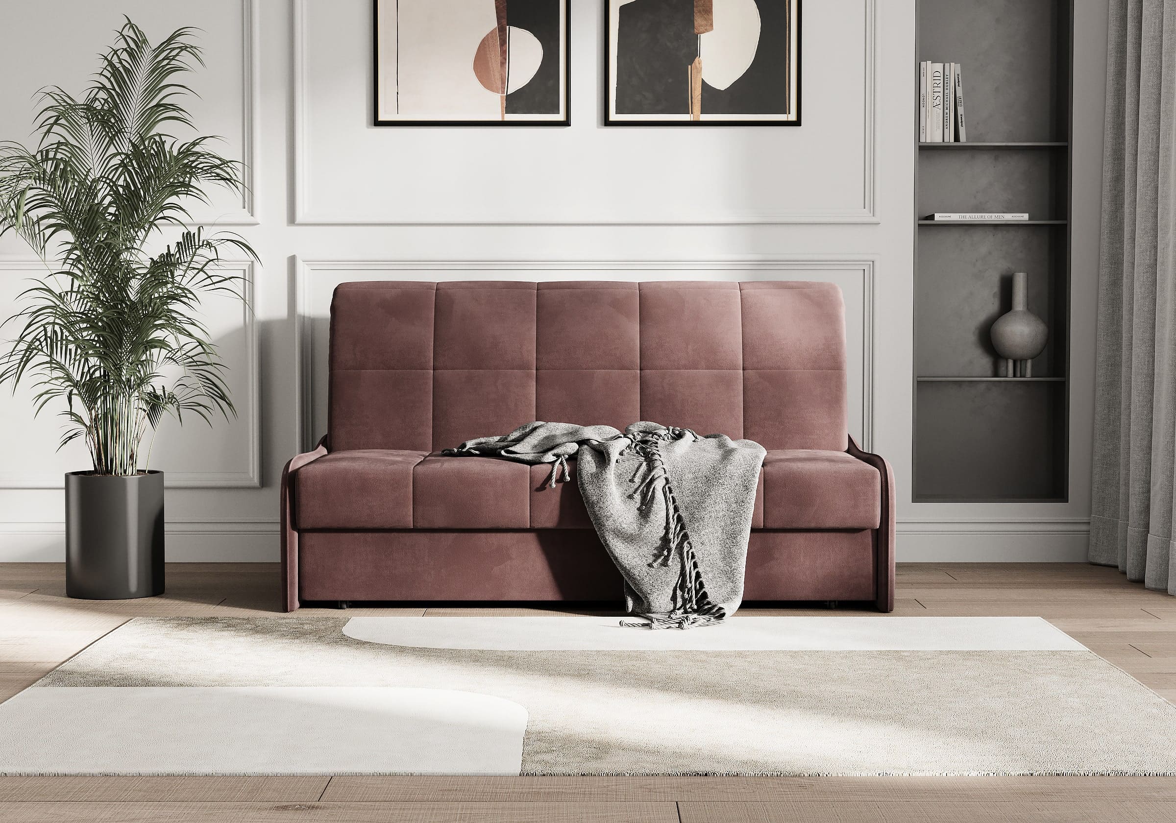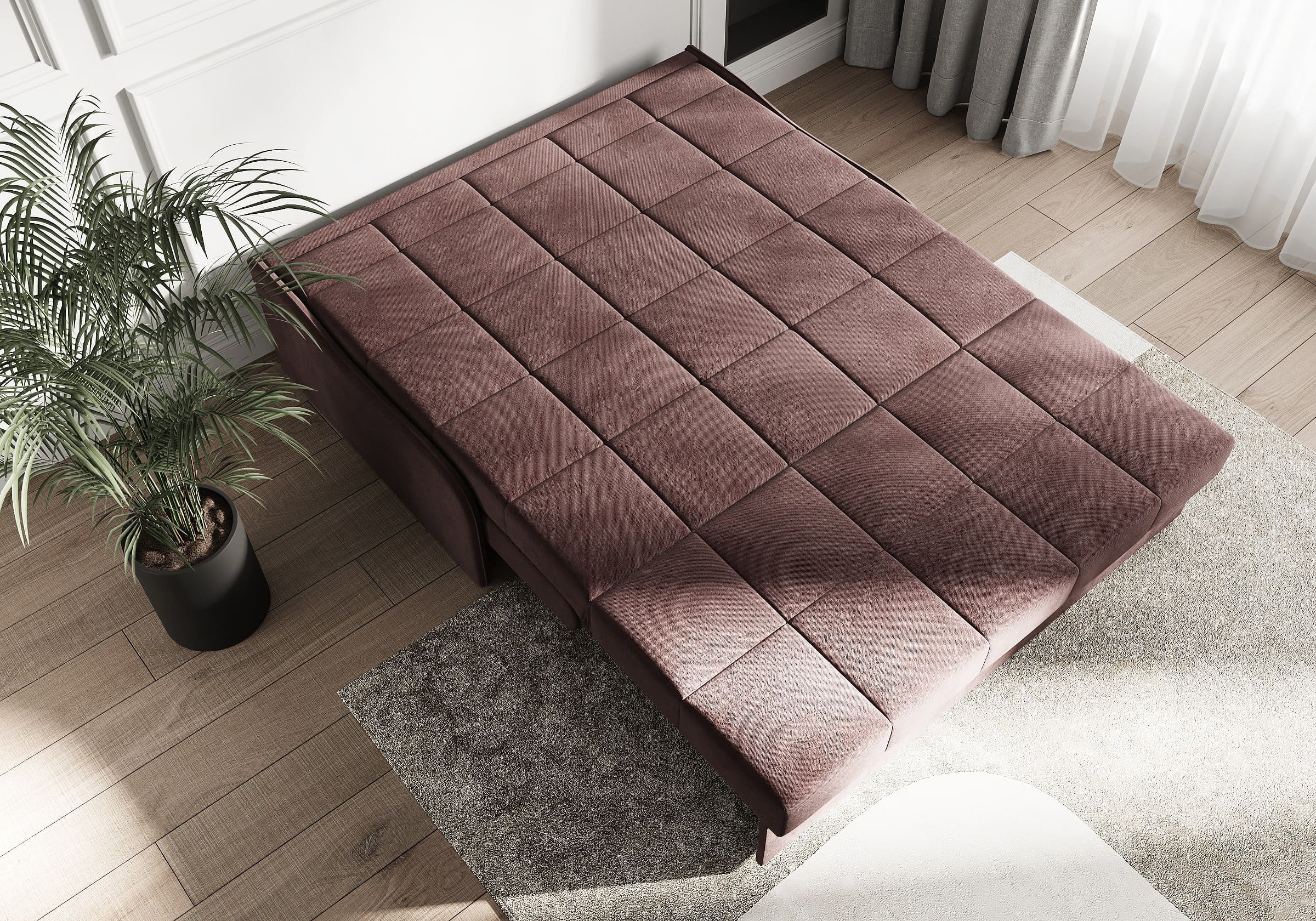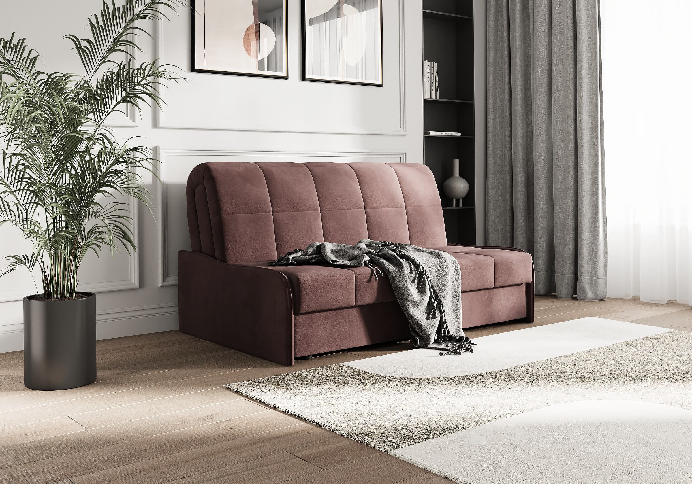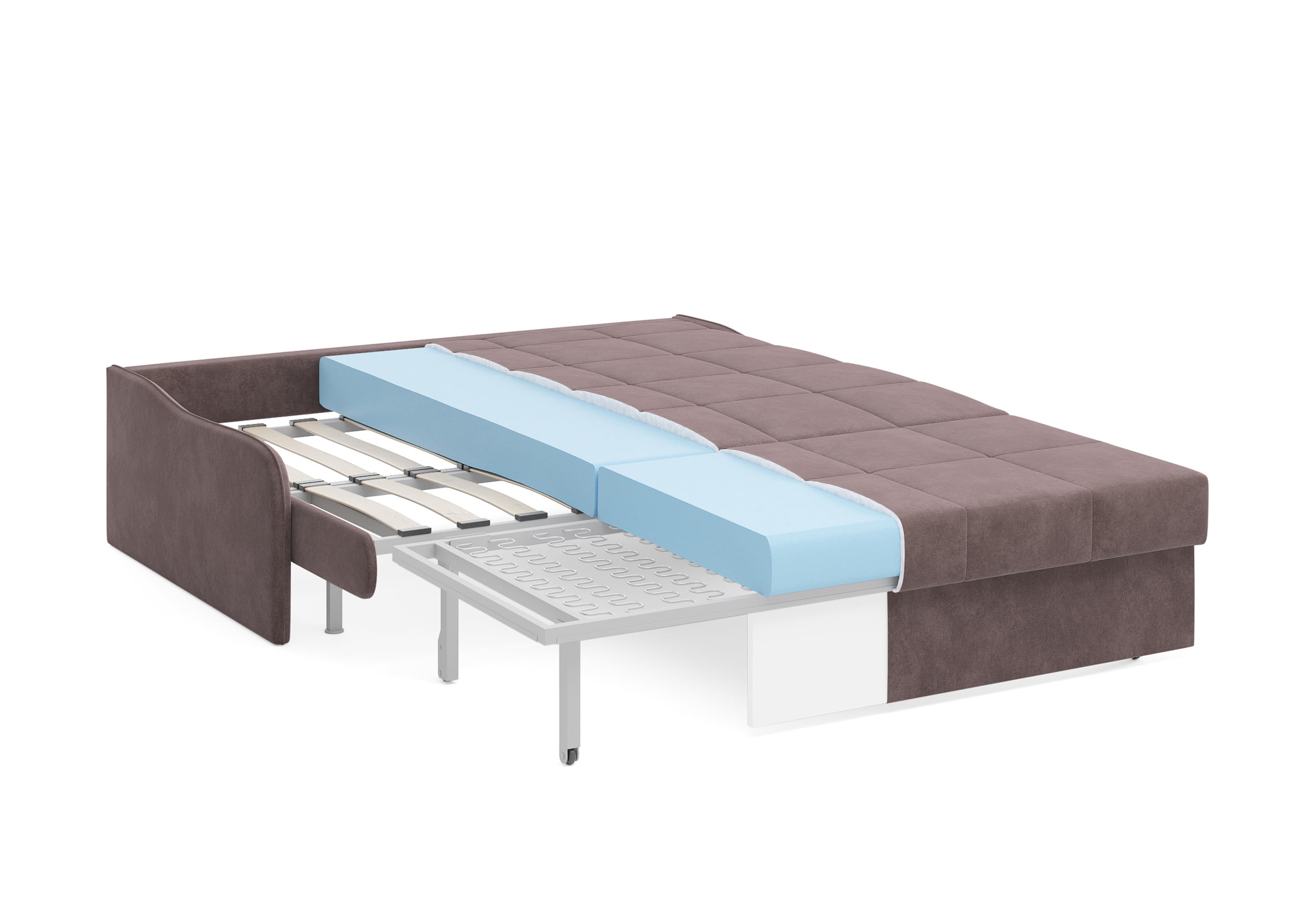 Диван-кровать Glen для сна в современном стиле, с механизмом трансформации аккордеон и беспружинным анатомическим матрасом. Металлический каркас с деревянными ламелями обеспечивает ровную поверхность, как на кровати. Матрас анатомический средней жесткости из высокоэластичной пены Foam обеспечит правильное положение во время сна. Чехол с объемной стежкой в форме квадратов делает диван универсальным для современных интерьеров и интерьеров в стиле минимализм. Благодаря лаконичным узким и низким подлокотникам, механизму разложения диван имеет минимальные габариты в ширину как в сложенном, так и разложенном виде. У Glen два положения трансформации - диван с комфортной посадкой и кровать с полноценным анатомическим матрасом.