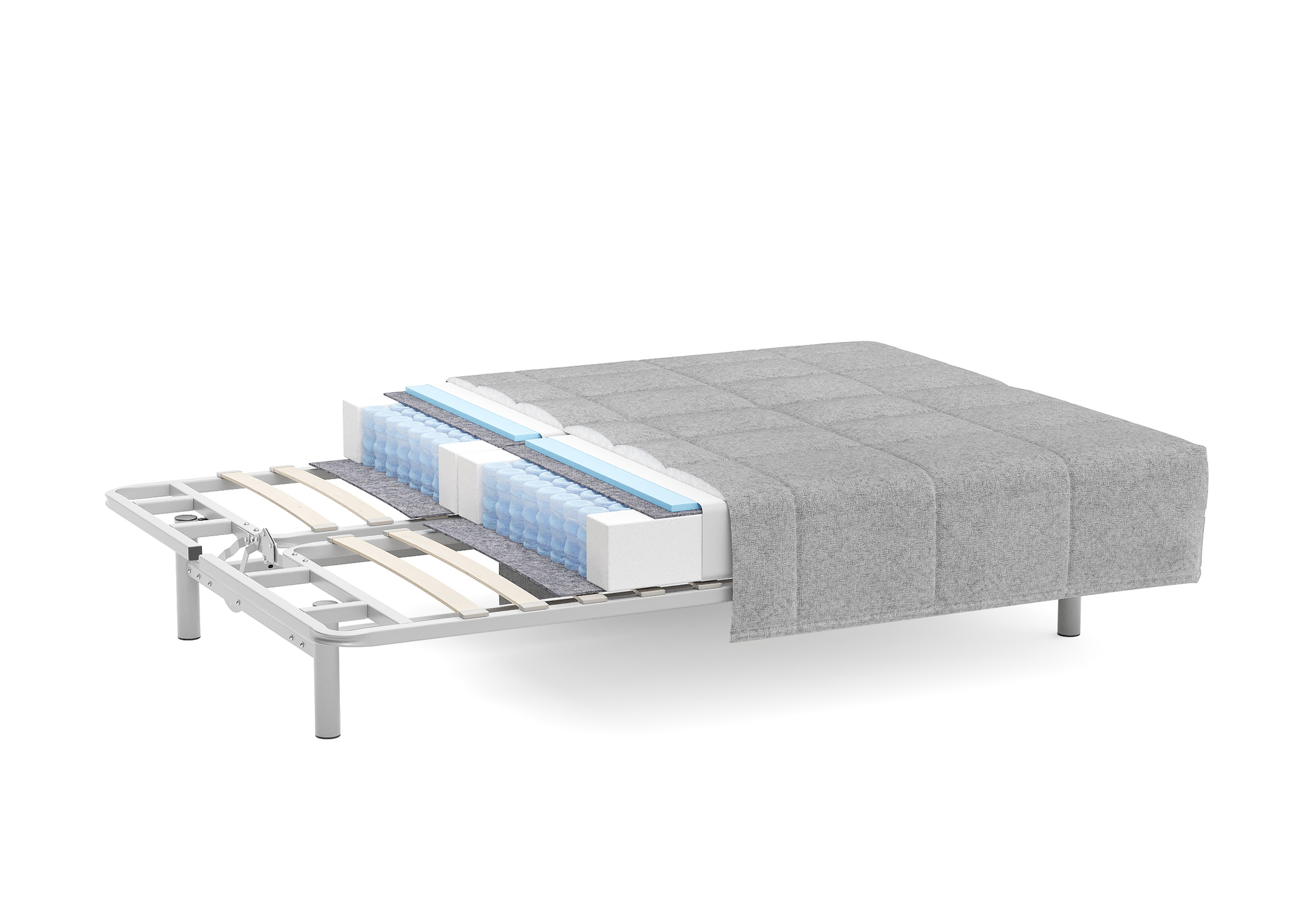 Металлическое основание имеет встроенные березовые ламели, обеспечивает равномерное распределение нагрузки.