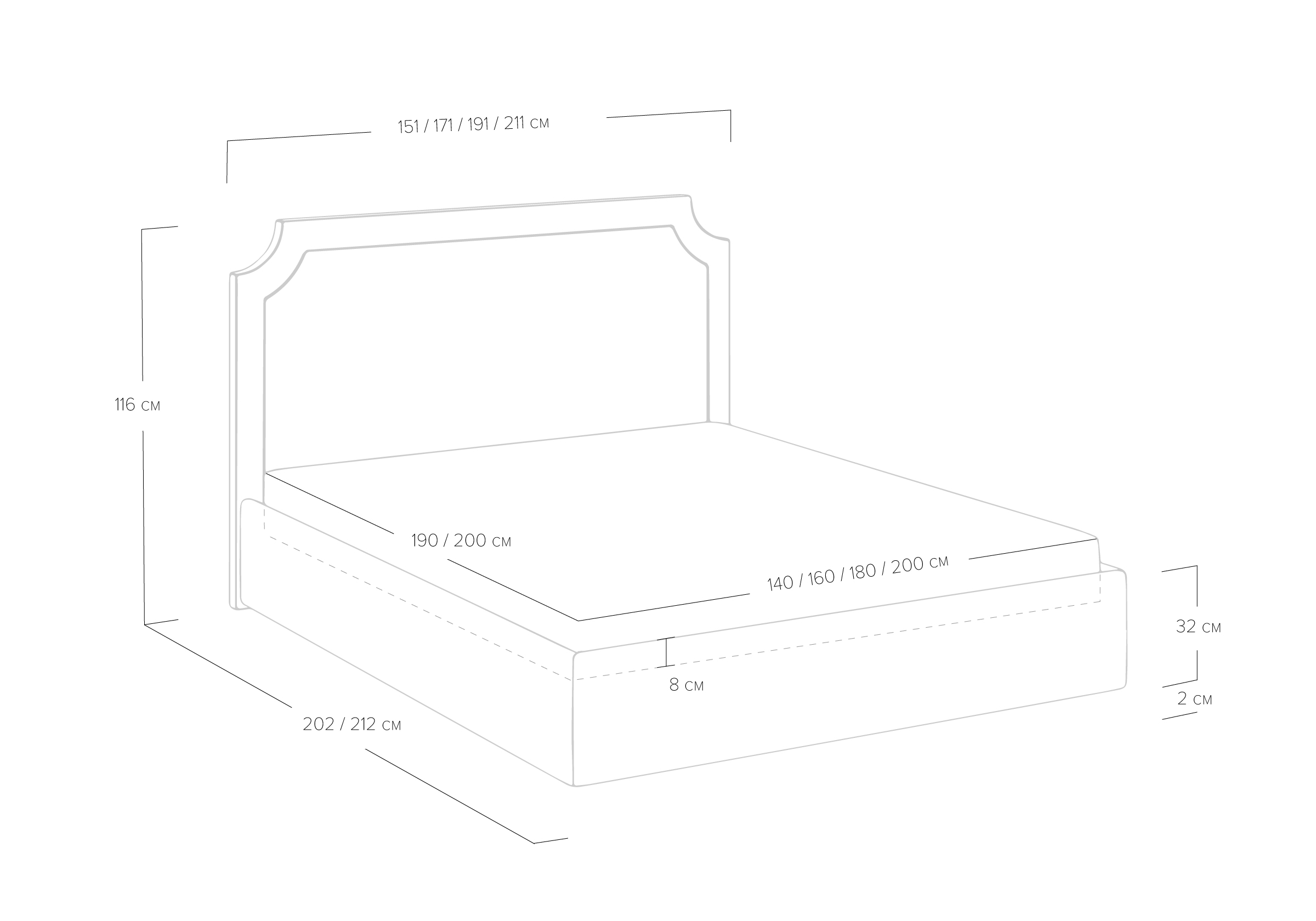 Изголовье выполнено в виде декоративной рамки с кантом. Изящные изгибы углов в классическом стиле придают кровати индивидуальность.