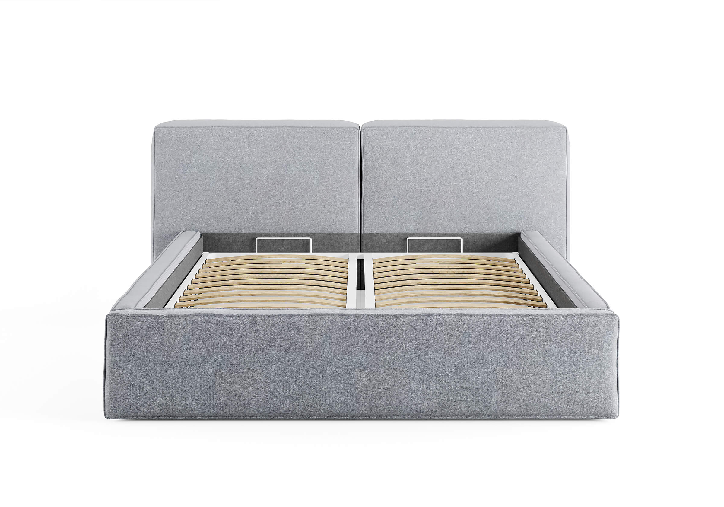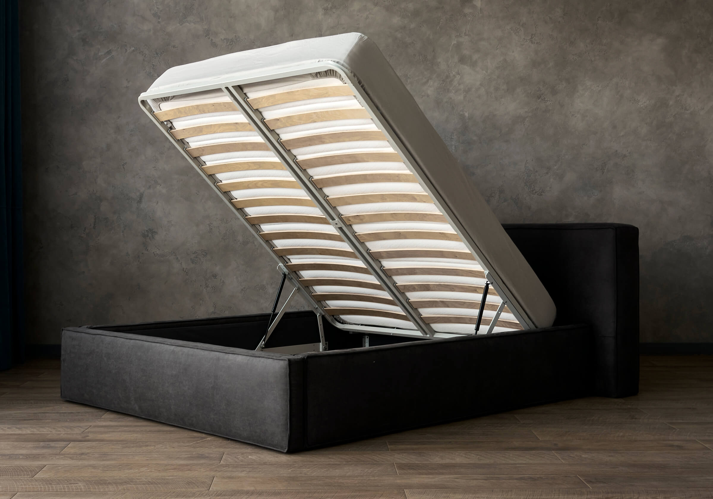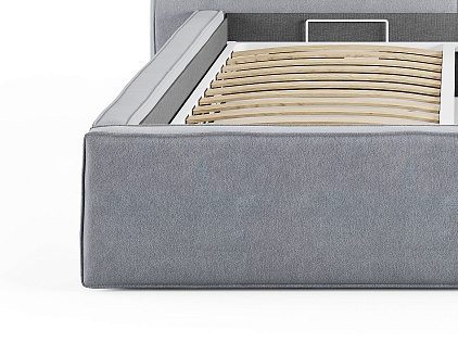 Возможна установка подъемного механизма со вместительным бельевым ящиком. Дно бельевого ящика легко сдвигается для обеспечения уборки под кроватью.
