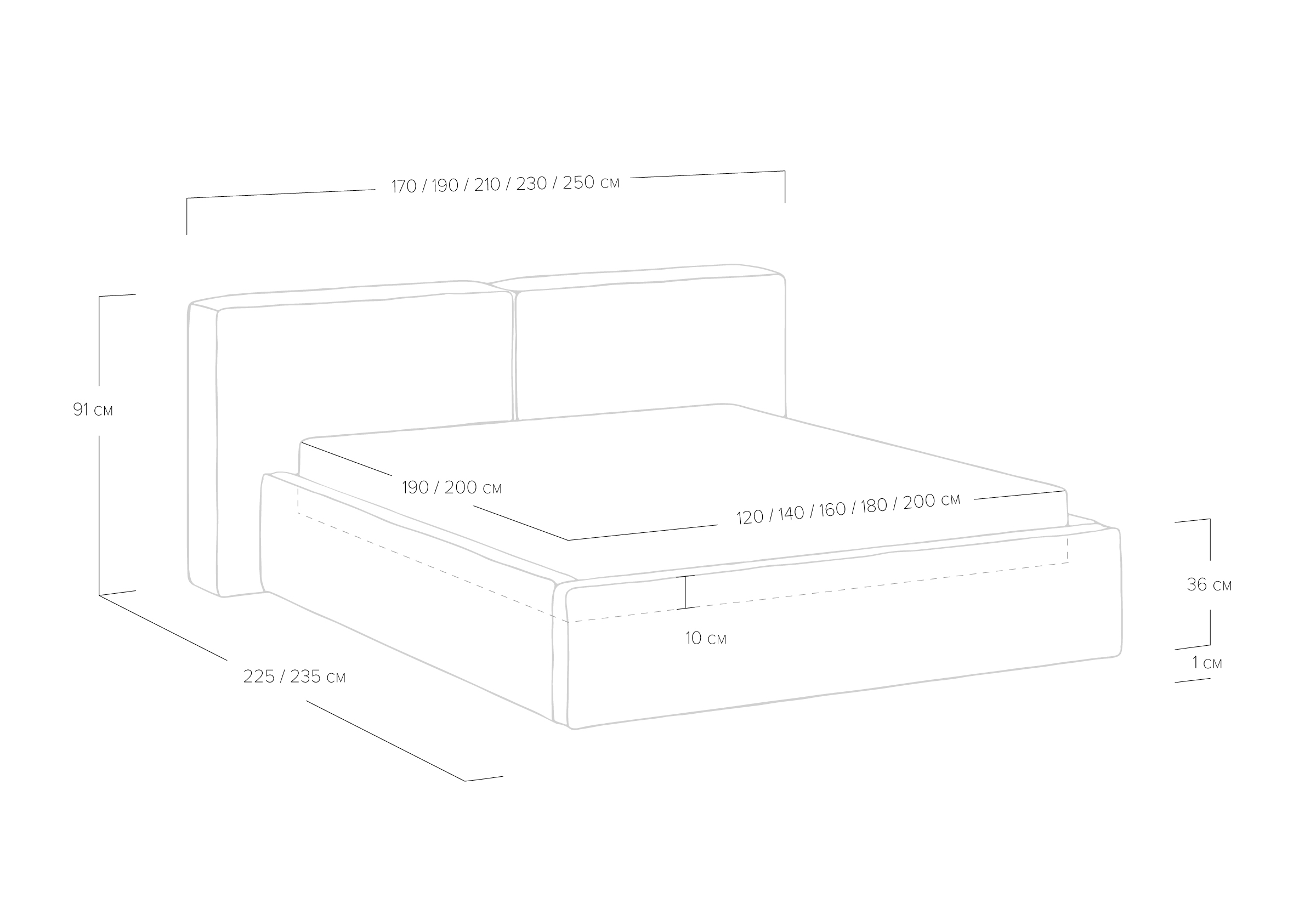 Дизайн кровати Europa подойдет для интерьеров в современном стиле, стиле лофт и минимализм. Спинка выполнена в виде двух объемных подушек. Широкие царги опущены до пола, а декоративный кант подчеркивает строгость и брутальность. Увеличенная прочность достигается за счет внутреннего металлического каркаса по периметру кровати. При необходимости кровать может быть укомплектована разборным или неразборным металлическим основанием с ламелями, подъемным механизмом с бельевым ящиком, трансформируемым основанием Aquarius.