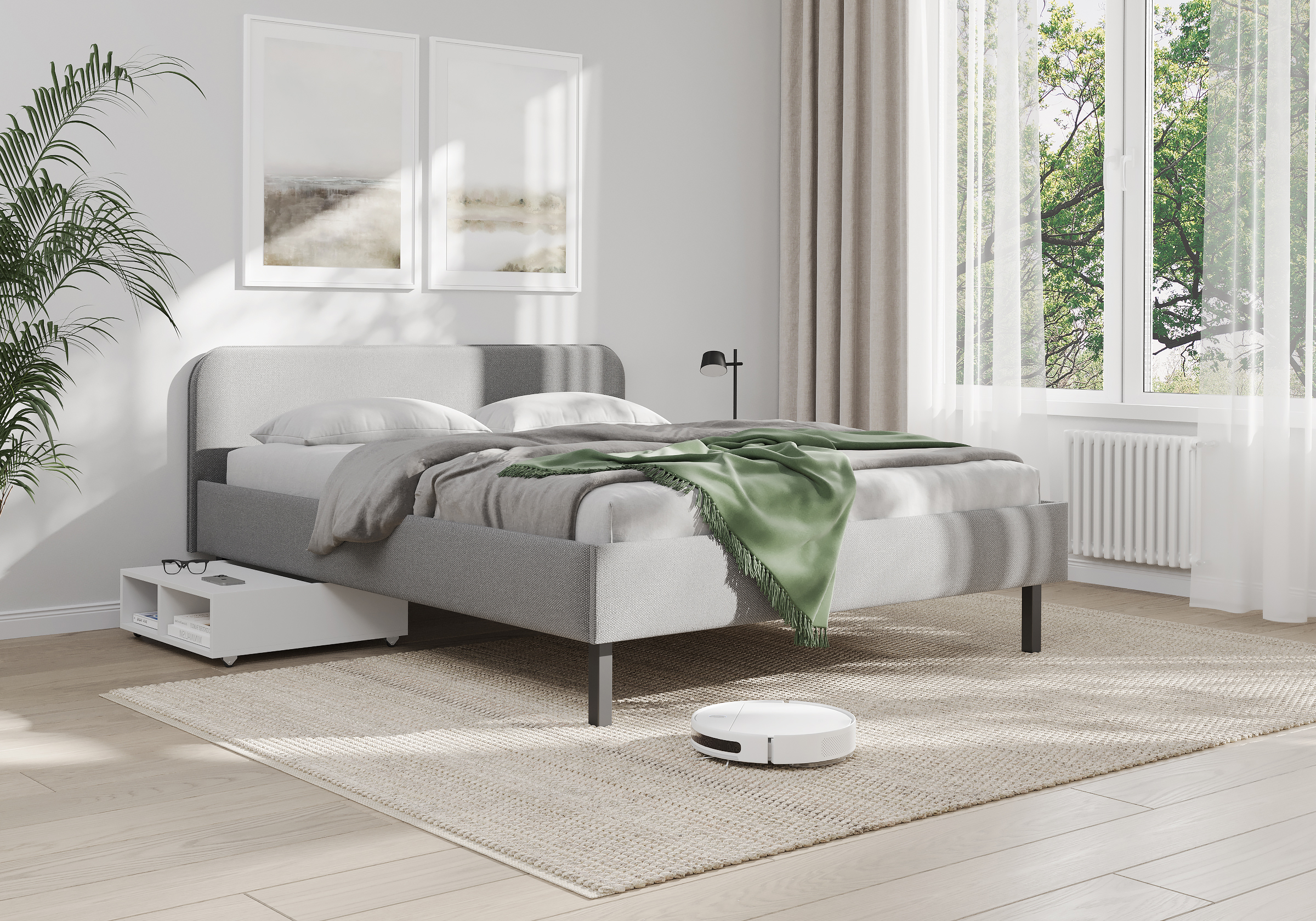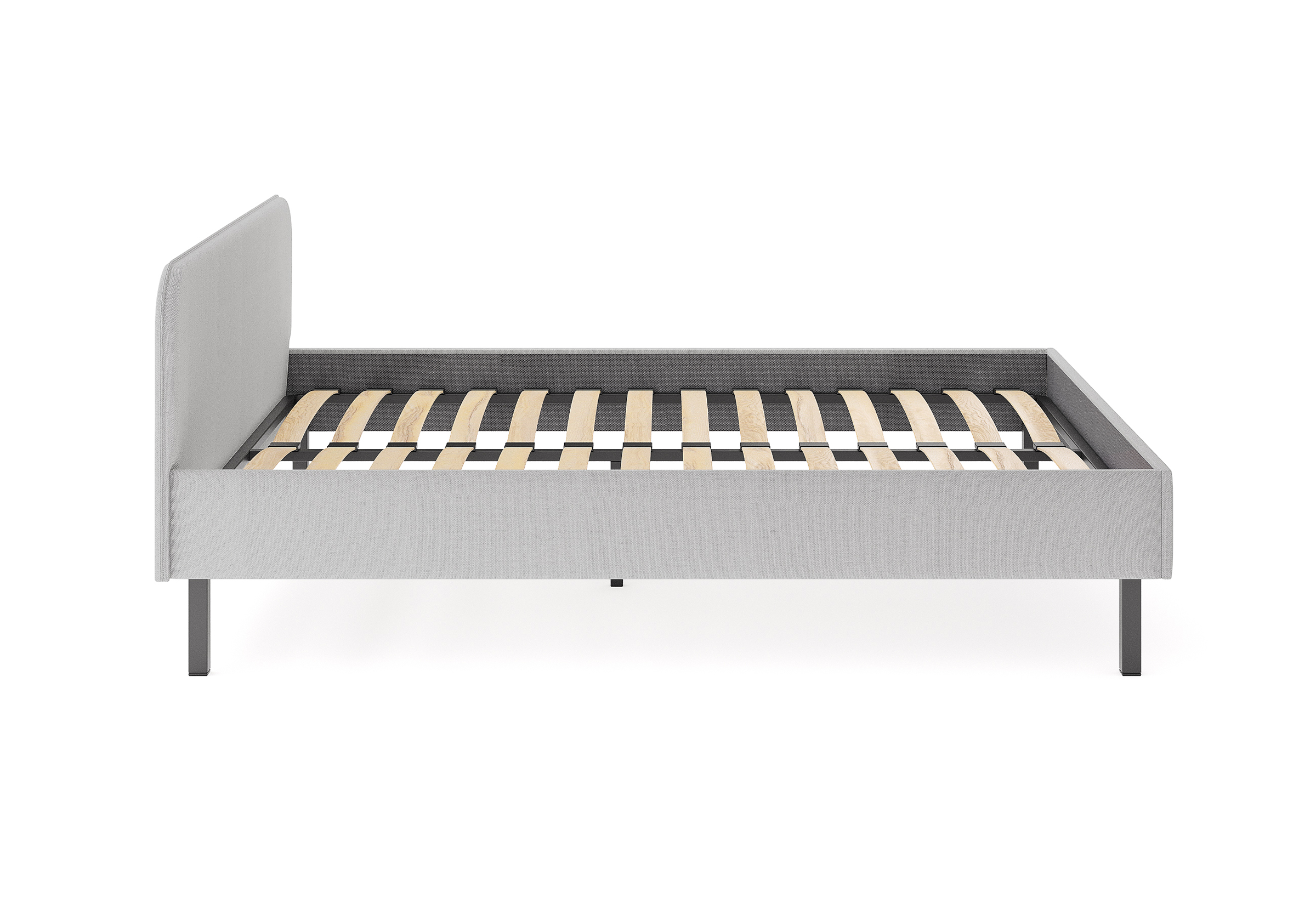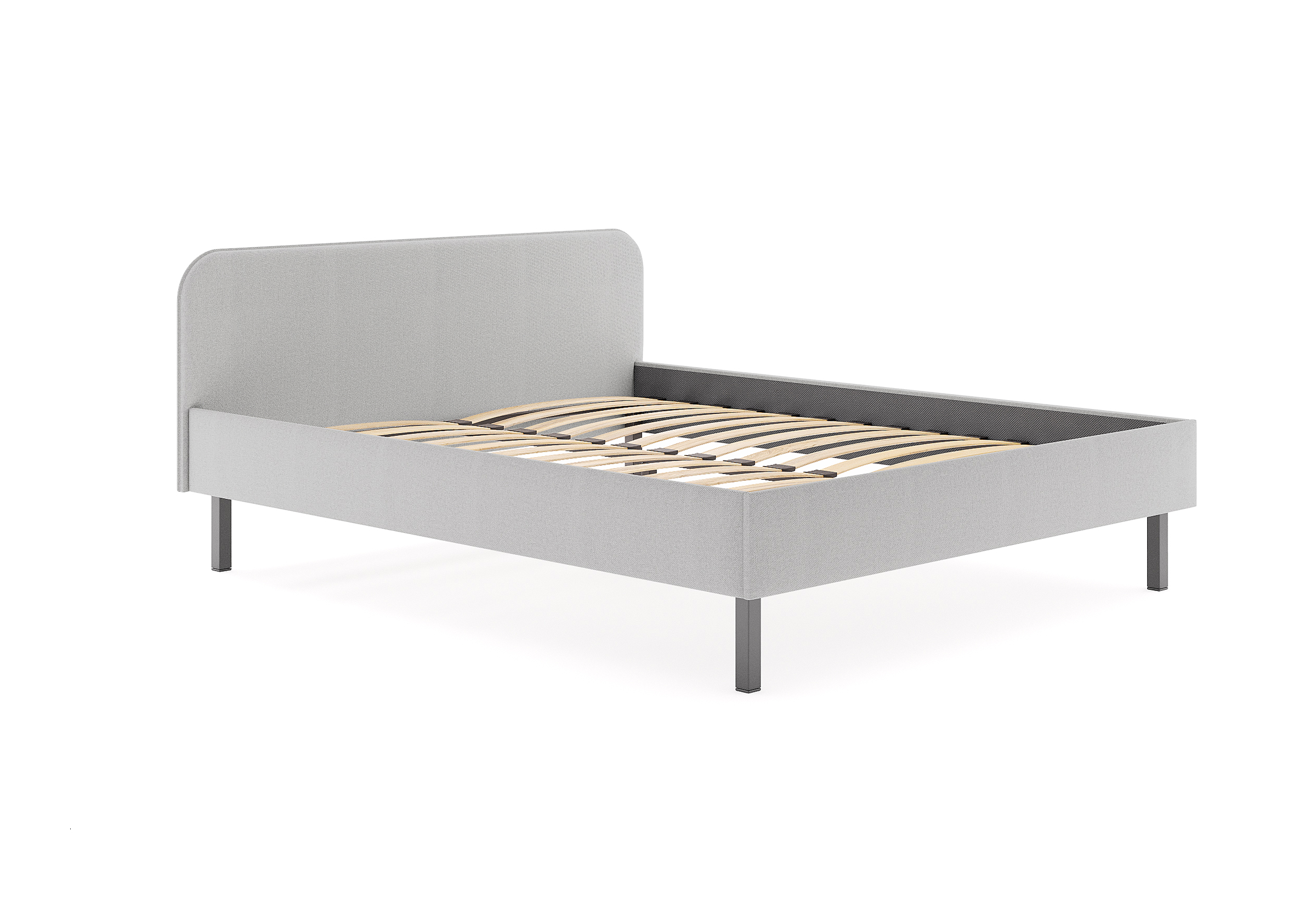 Основание кровати на высоких металлических ножках. Благодаря увеличенной высоте позволяют осуществлять легкую уборку под кроватью, даже с помощью робота-пылесоса.