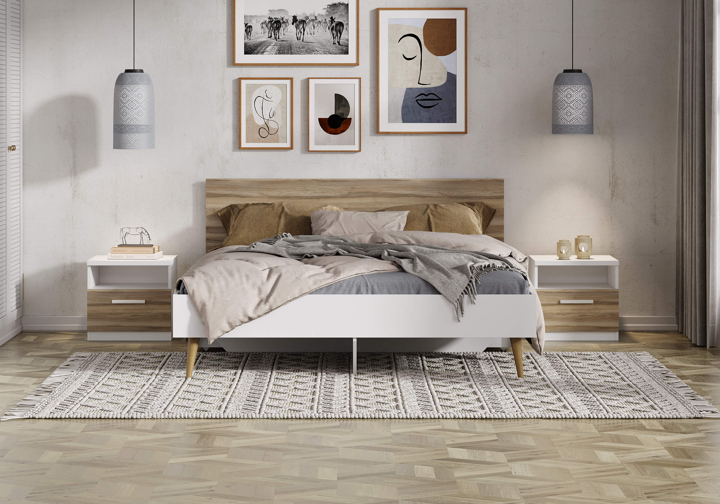 Кровать Ines оригинальное решение для спальни в скандинавском стиле. Благодаря деревянным ножкам кровать смотрится легкой и воздушной. В качестве основания используется настил из ЛДСП. Система усиленных средней и центральной царг позволяют выдерживать высокие нагрузки. Большое расстояние от пола до царги облегчает уборку под кроватью, делает доступной использование робота-пылесоса. Кровать можно укомплектовать ящиками для хранения вещей (приобретаются дополнительно).