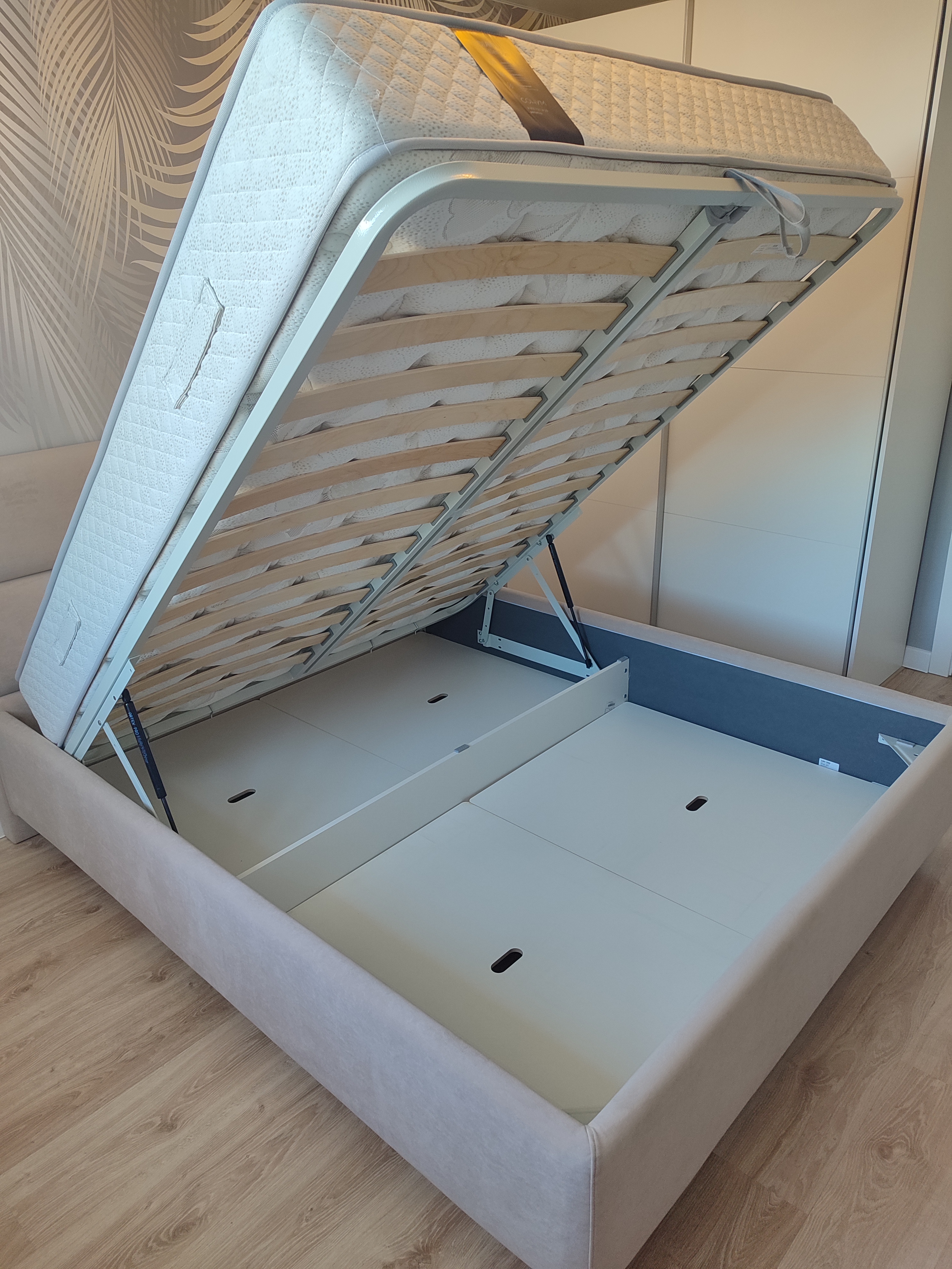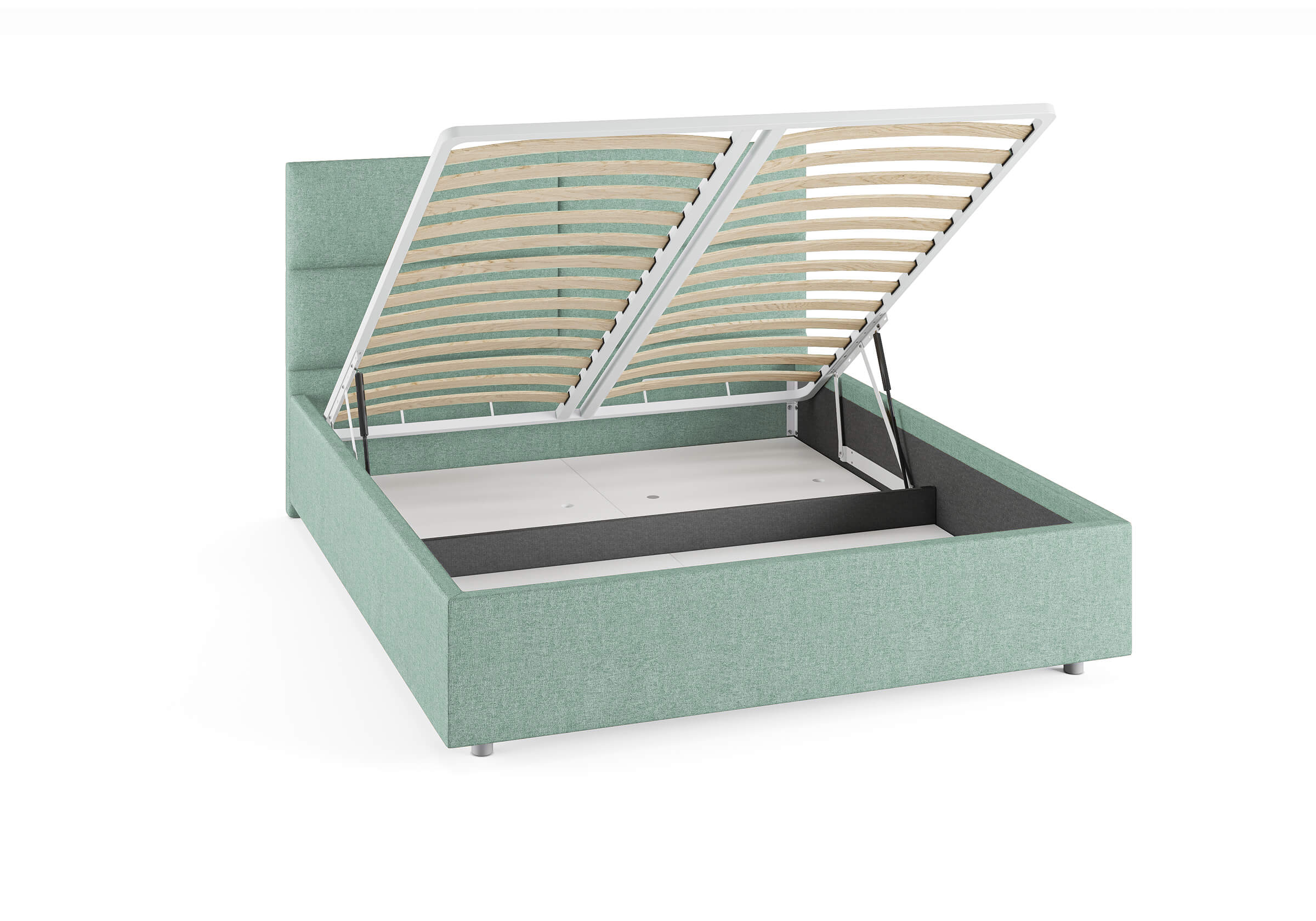 Возможность установки подъемного механизма со вместительным бельевым ящиком. Дно бельевого ящика легко сдвигается для обеспечения уборки под кроватью.