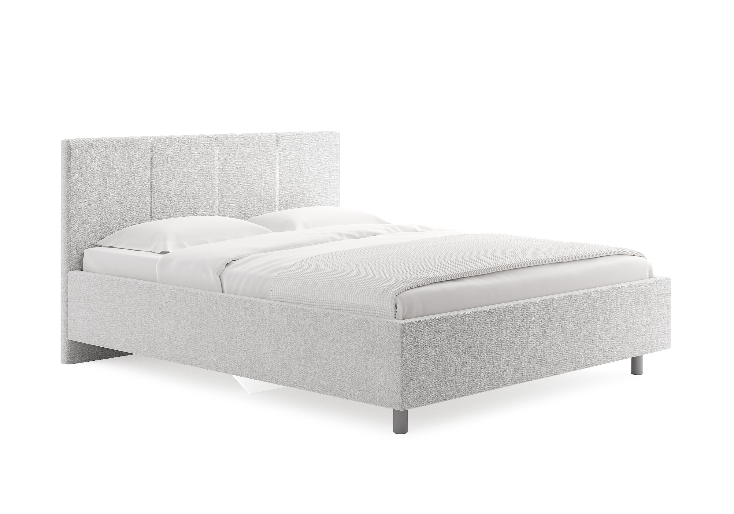 Элегантная кровать с изголовьем украшенным декоративной вертикальной строчкой. Модель изготовлена из ДСП. При необходимости кровать может быть укомплектована разборным или неразборным металлическим основанием с ламелями, подъемным механизмом с бельевым ящиком, трансформируемым основанием Aquarius.