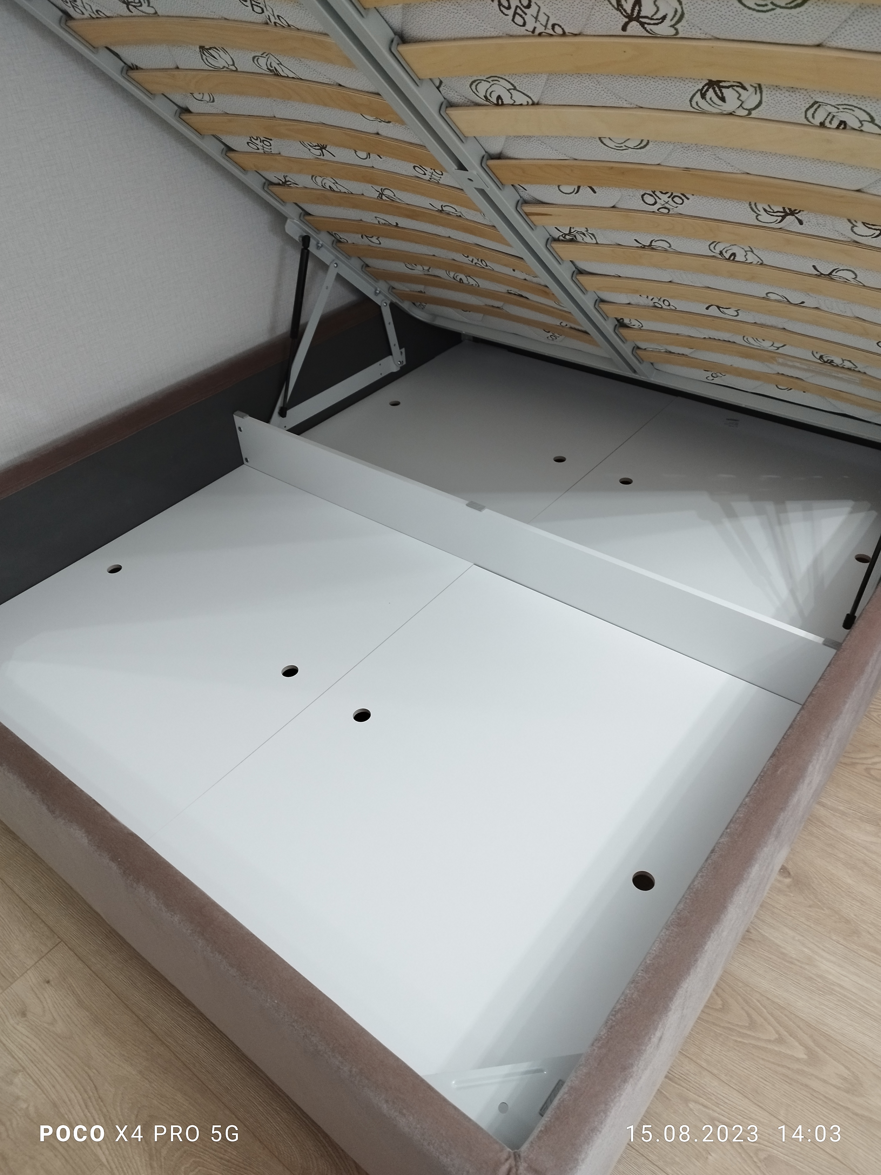Лучшая кровать, что у меня были. Крепкая, на ножках, всё продумано до мелочей. Качественный подъёмный механизм, легко поднимаю. Съёмные борта, отлично отстроченные. Дно крепкое у ящика не провисает, можно убрать и промыть тщательно под кроватью. Даже не верится, что у нас могут так делать, благодарю за качество и красоту.