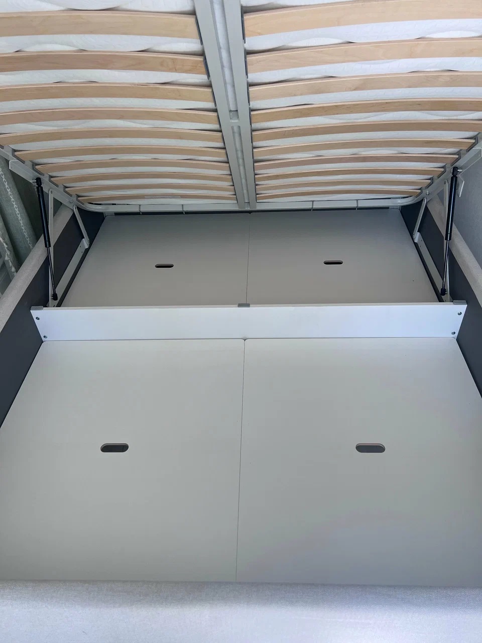 Возможность установки подъемного механизма со вместительным бельевым ящиком. Дно бельевого ящика легко сдвигается для обеспечения уборки под кроватью.