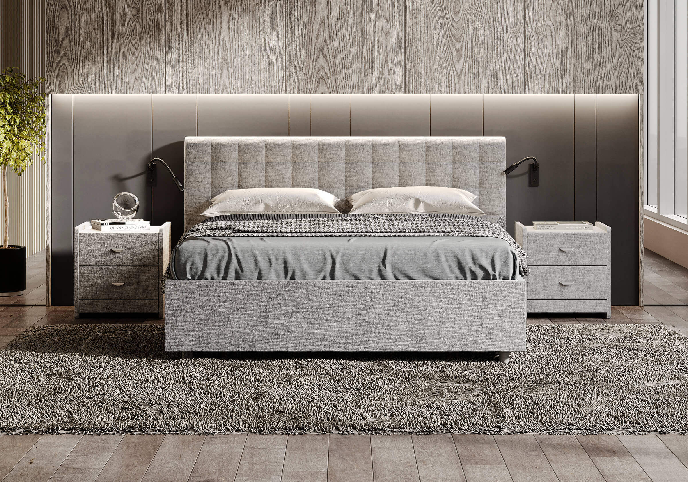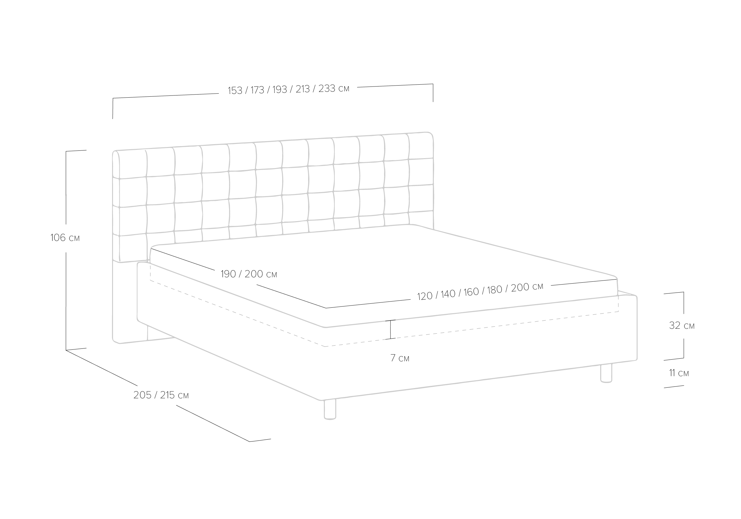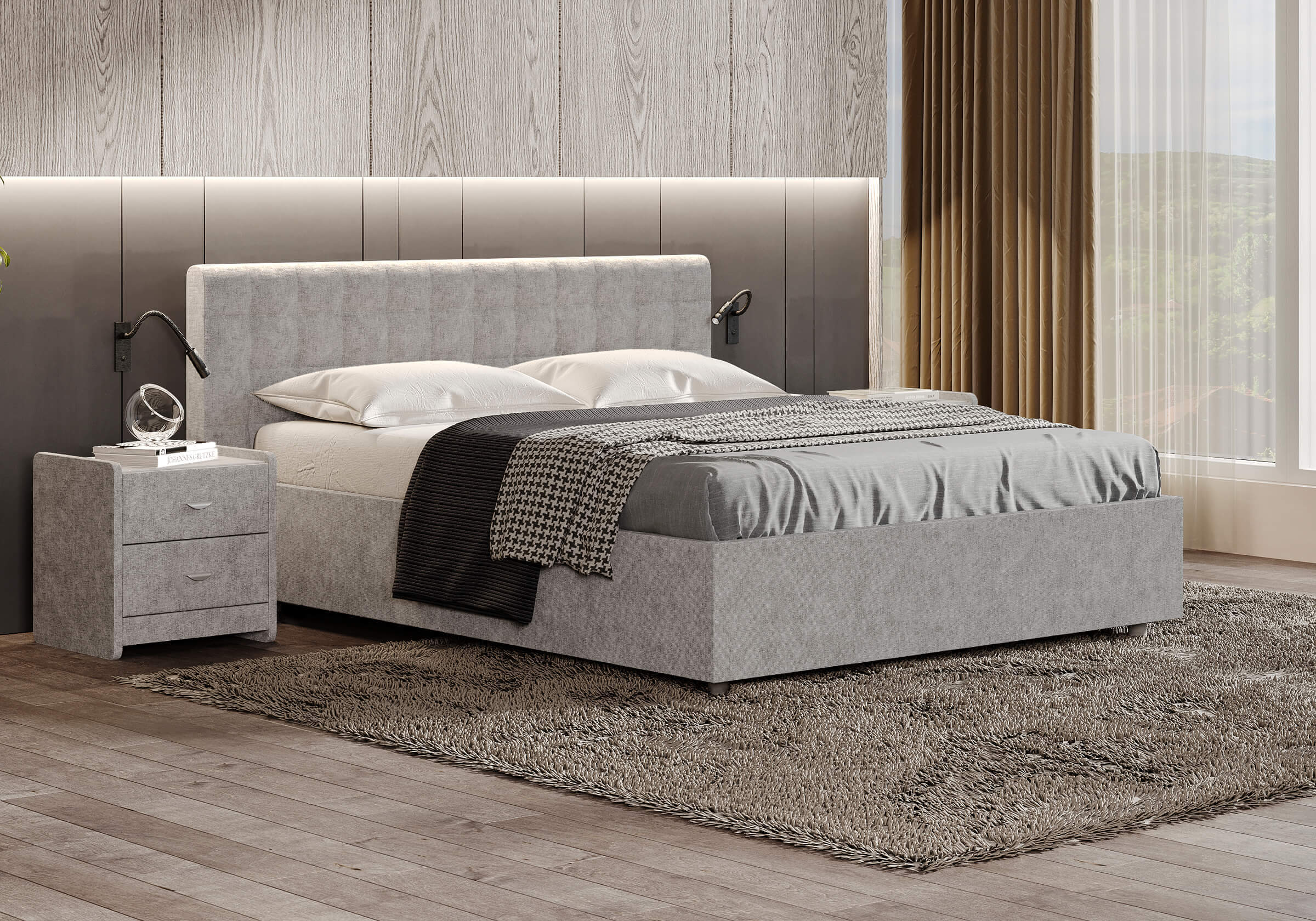 Современная и стильная интерьерная кровать для двоих. Модель изготовлена из ДСП и ДВП. При необходимости кровать может быть укомплектована разборным или неразборным металлическим основанием с ламелями, подъемным механизмом с бельевым ящиком, трансформируемым основанием Aquarius.