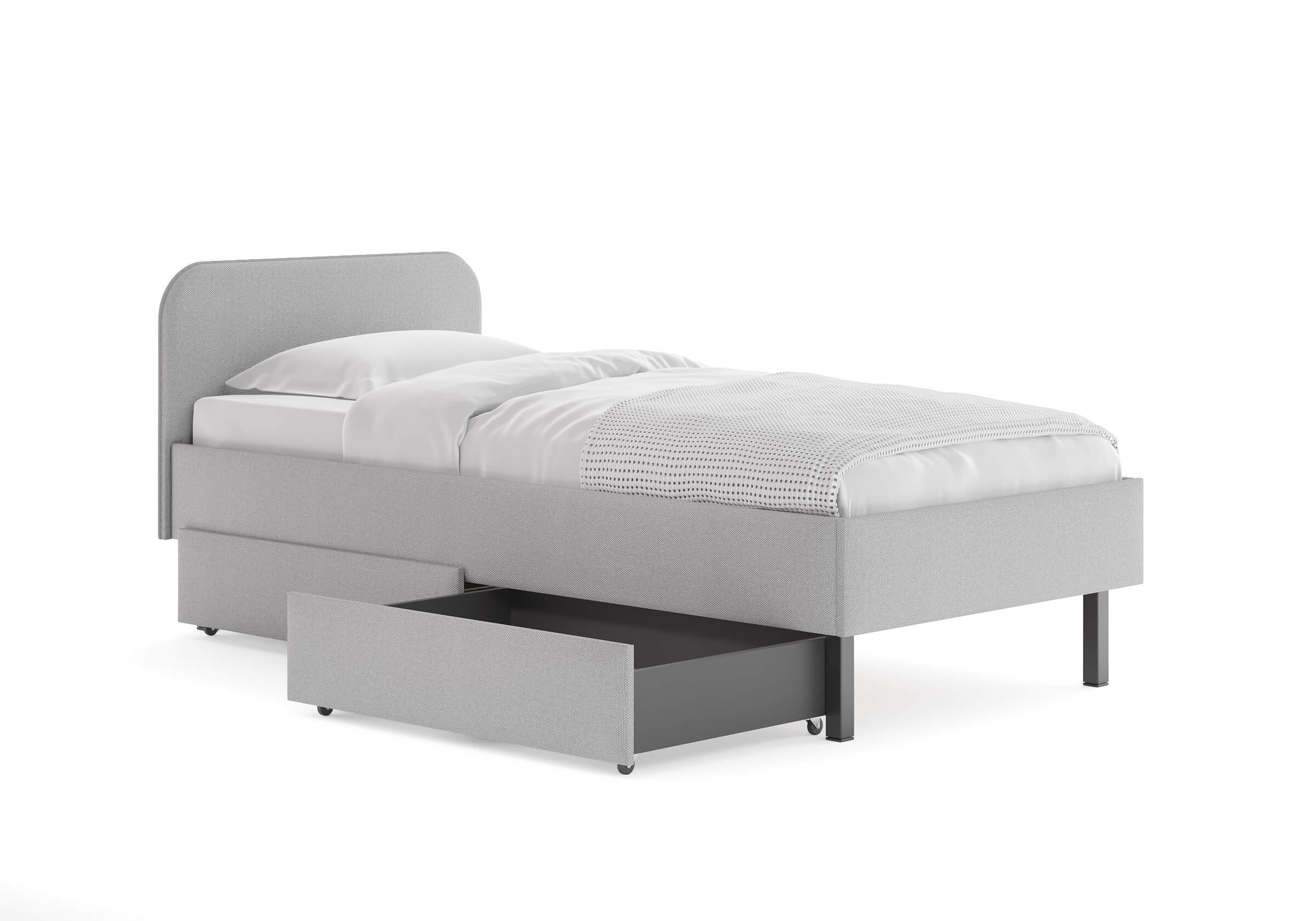 Лаконичная кровать Hanna подойдет для спален в скандинавском стиле и стиле минимализм. Мягкое изголовье в рогожке актуальных цветов, закругленные углы, декоративный кант, узкие царги делают кровать универсальной для большинства современных интерьеров. Увеличенное расстояние до царг способствует легкой уборке под кроватью роботом – пылесосом. Модель может комплектоваться только неразборным ортопедическим основанием с ламелями. Основание выполняет роль металлического каркаса кровати, изголовье и царги надежно крепятся между собой, обеспечивая прочность и устойчивость. Опционально устанавливаются ящики для хранения в ткани (приобретаются дополнительно) и тумбы выкатные(приобретаются дополнительно)