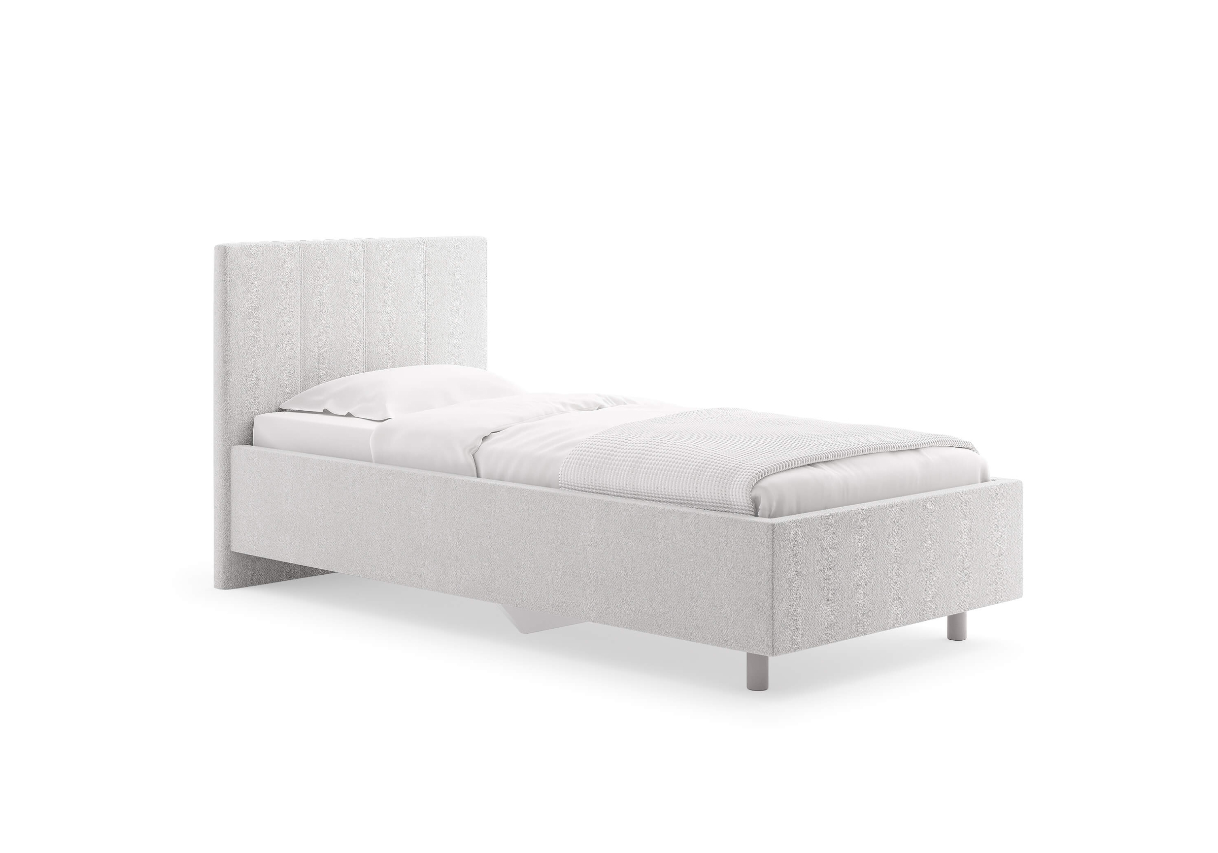 Элегантная кровать с изголовьем украшенным декоративной вертикальной строчкой. Модель изготовлена из ДСП. При необходимости кровать может быть укомплектована разборным или неразборным металлическим основанием с ламелями, подъемным механизмом с бельевым ящиком, трансформируемым основанием Aquarius.