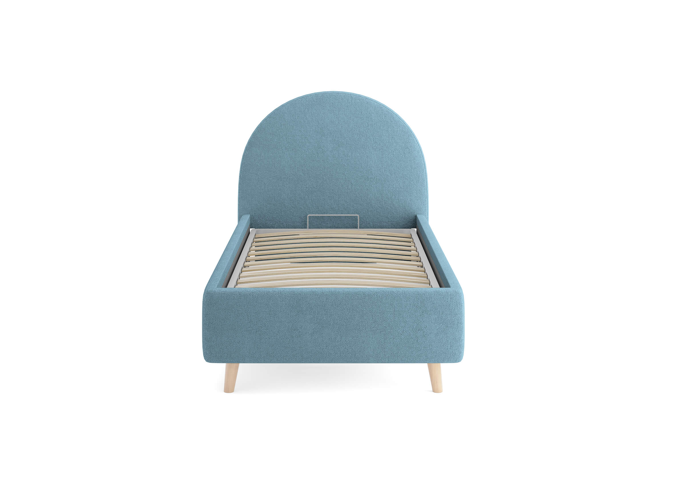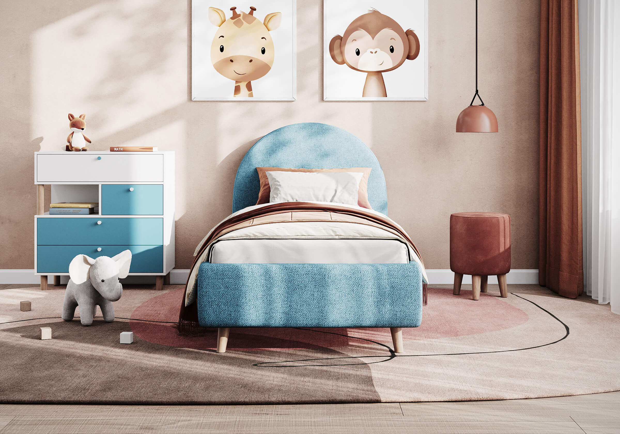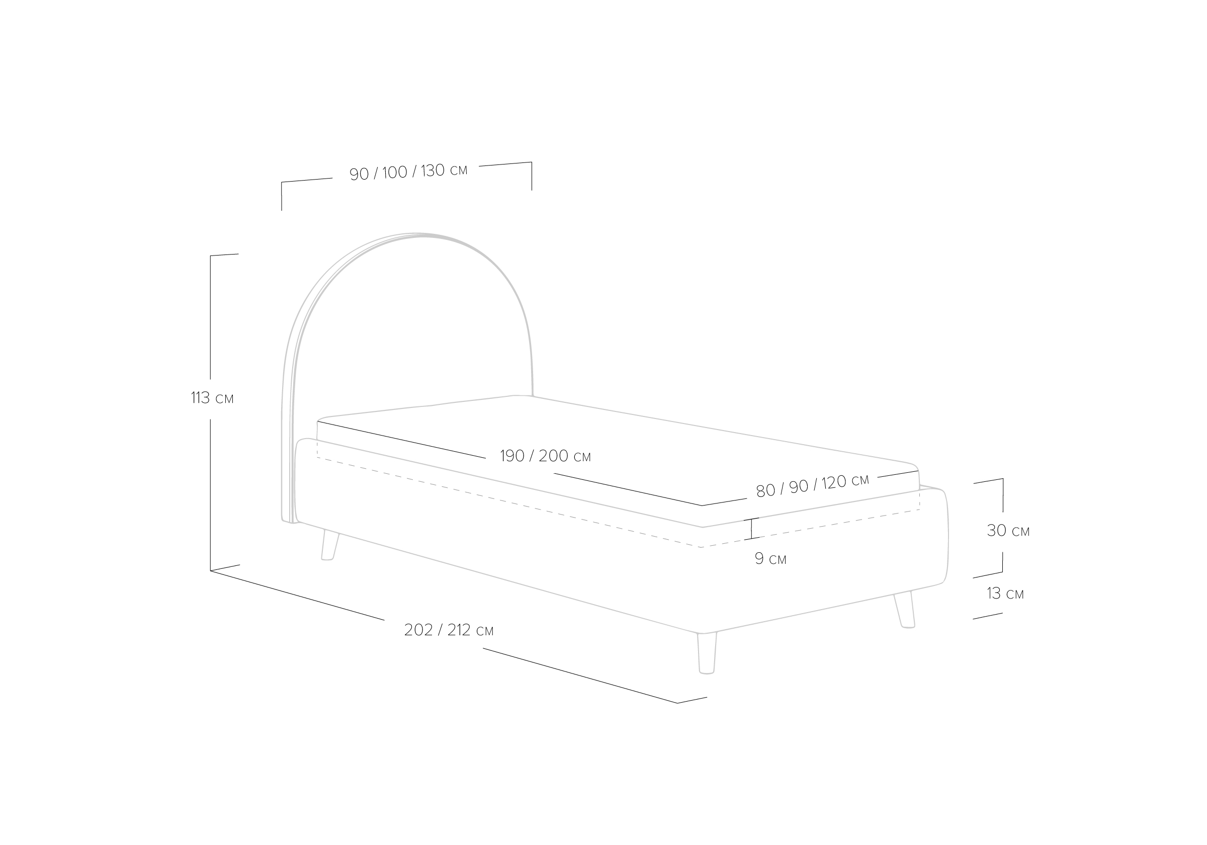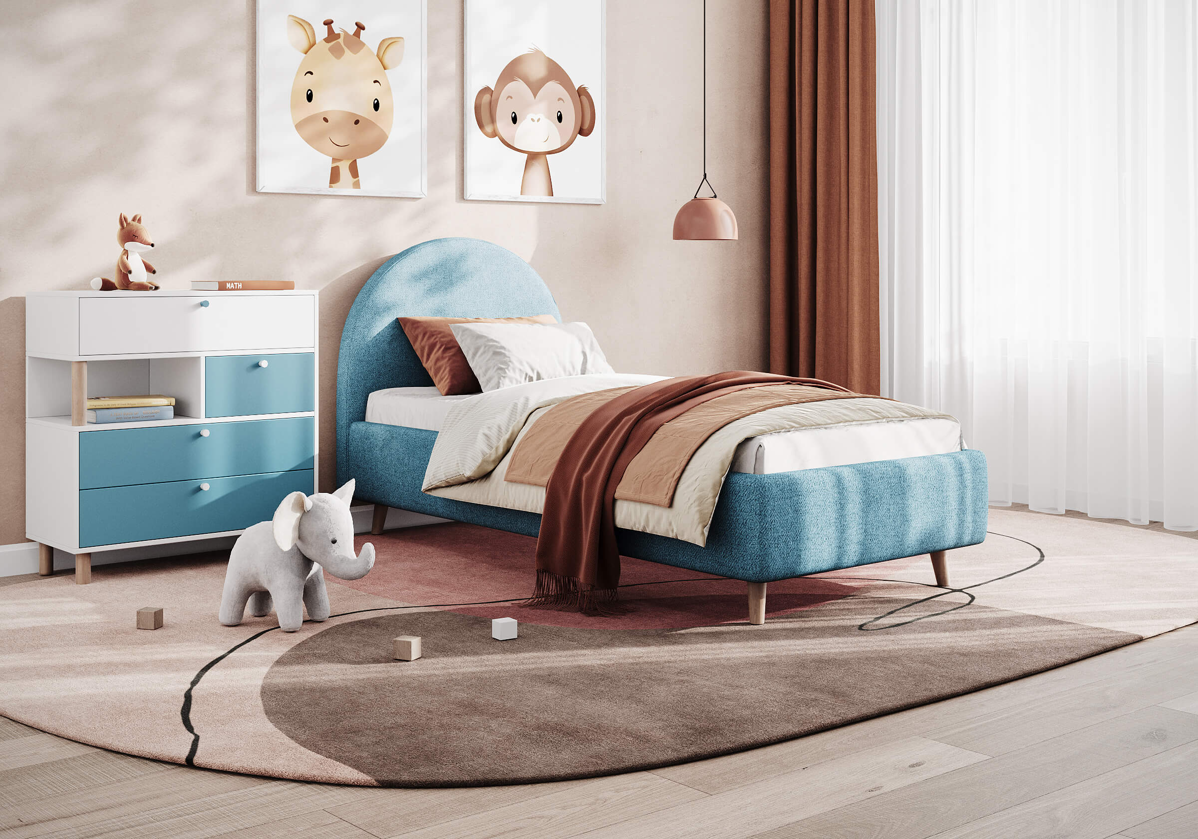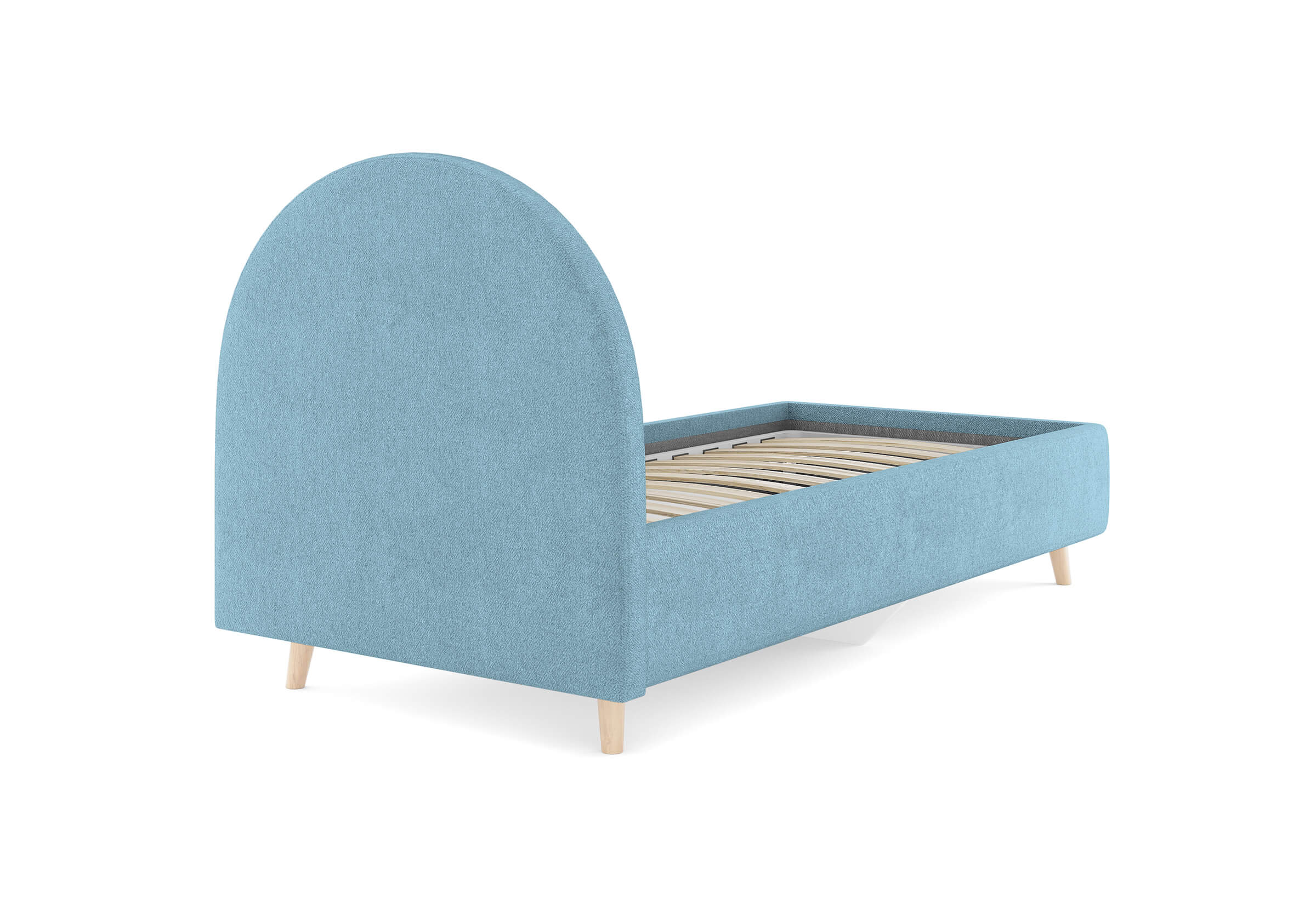 Подростковая кровать с закругленным изголовьем — это идеальное решение для создания уютного и стильного пространства в комнате. Элегантные линии изголовья не только придают изделию изысканный вид, но и добавят мягкость в интерьер, создавая уютную обстановку. По умолчанию задняя спинка кровати обивается тканью, что позволит расположить кровать не только к стене. При необходимости кровать может быть укомплектована разборным или неразборным металлическим основанием с ламелями, подъемным механизмом с бельевым ящиком и основанием Aquarius