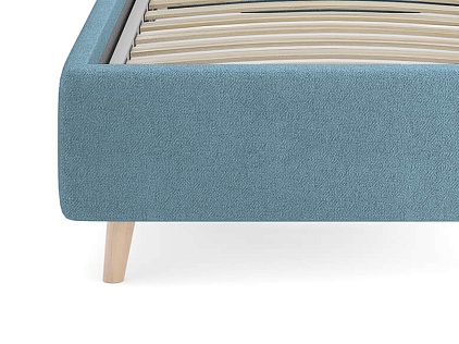 Основание кровати на высоких деревянных ножках. Благодаря увеличенной высоте позволяют осуществлять легкую уборку под кроватью, даже с помощью робота-пылесоса.