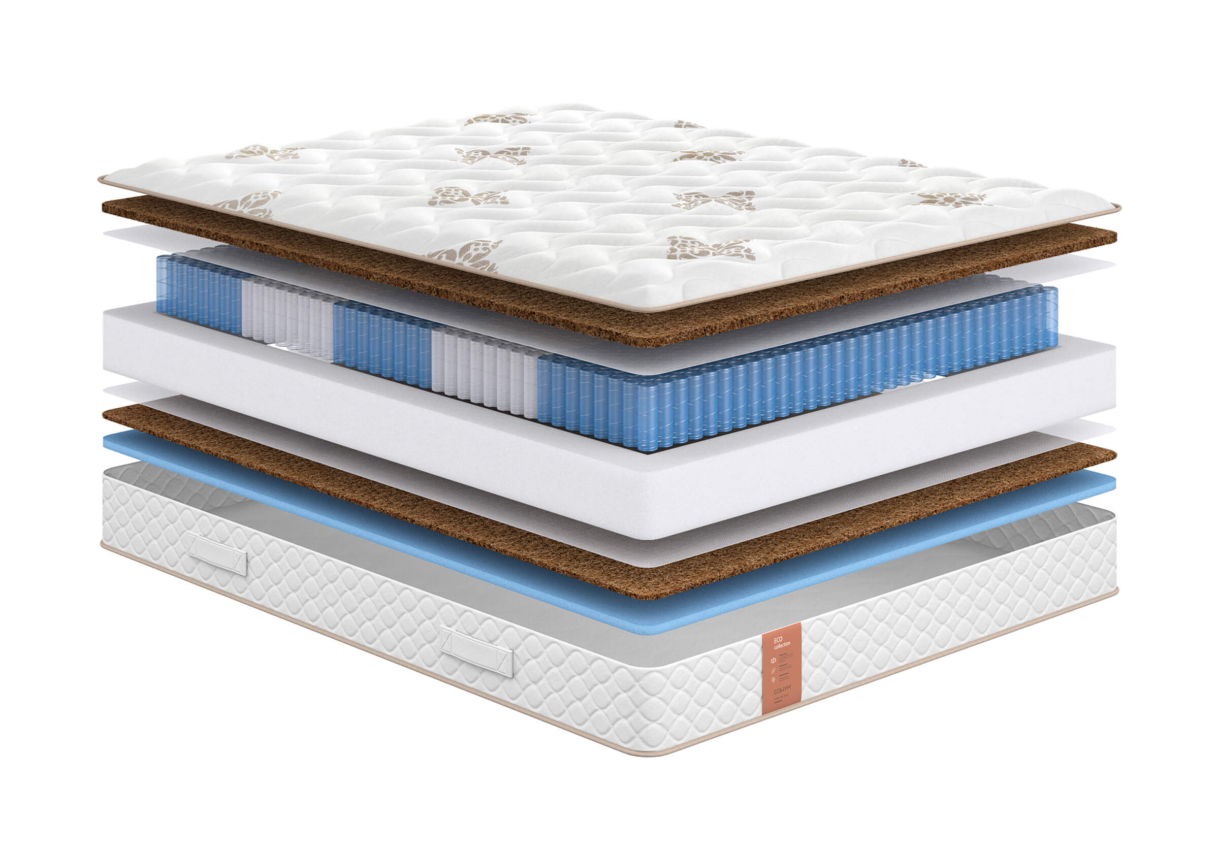 Природный натуральный материал. Состоит из волокон ореха кокосовой пальмы, пропитанных составом из натурального латекса. Гипоалергенен, обеспечивает циркуляцию воздуха и теплообмен.