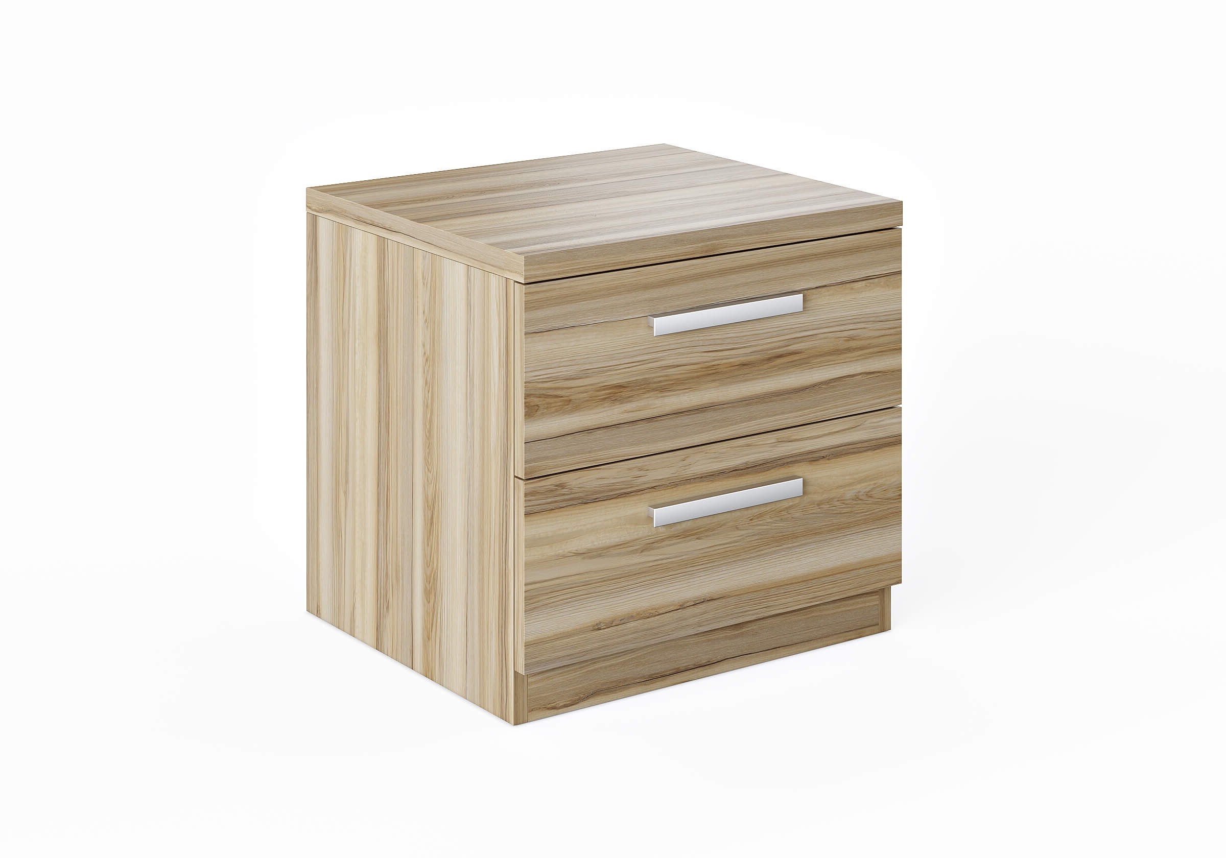 Шариковые направляющие позволяют легко выдвигать ящик, а металлические ручки придают строгость.