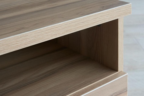 Кромка ПВХ увеличенной толщины надежно защищает ЛДСП от попадания влаги, сколов и расслаивания.