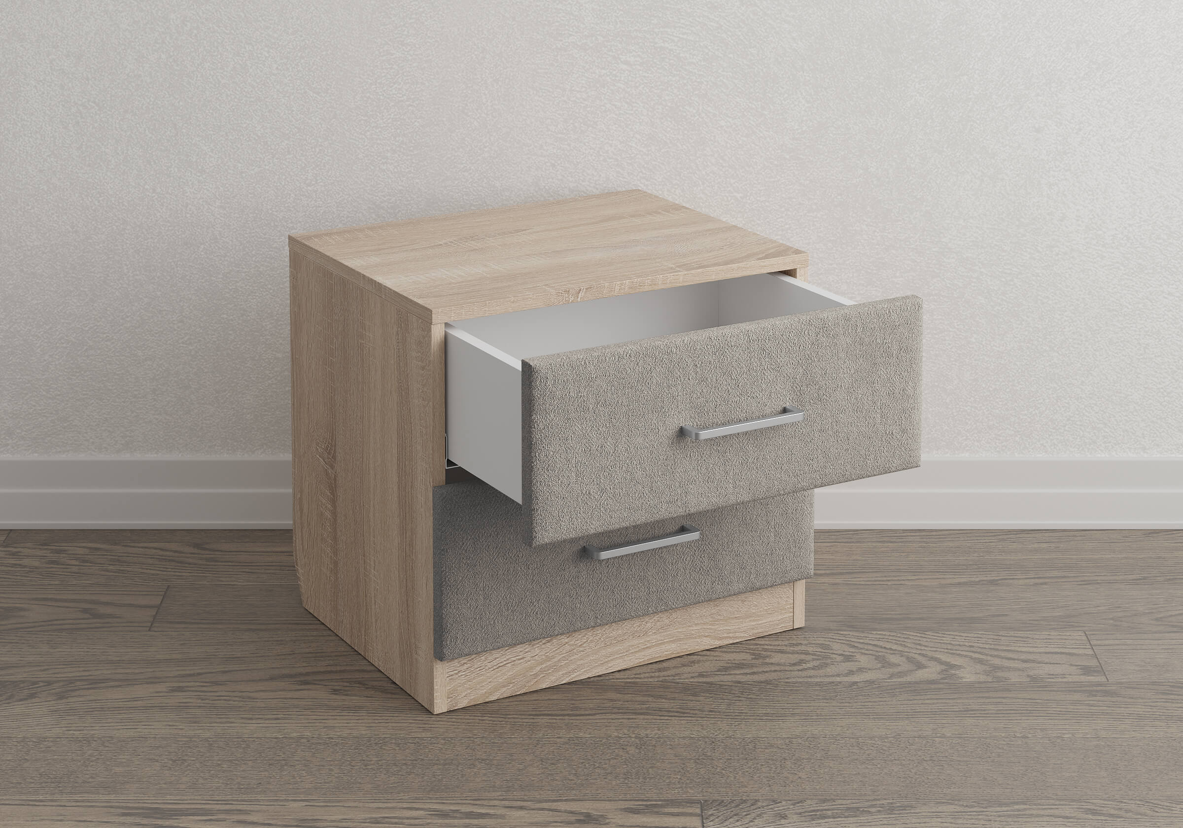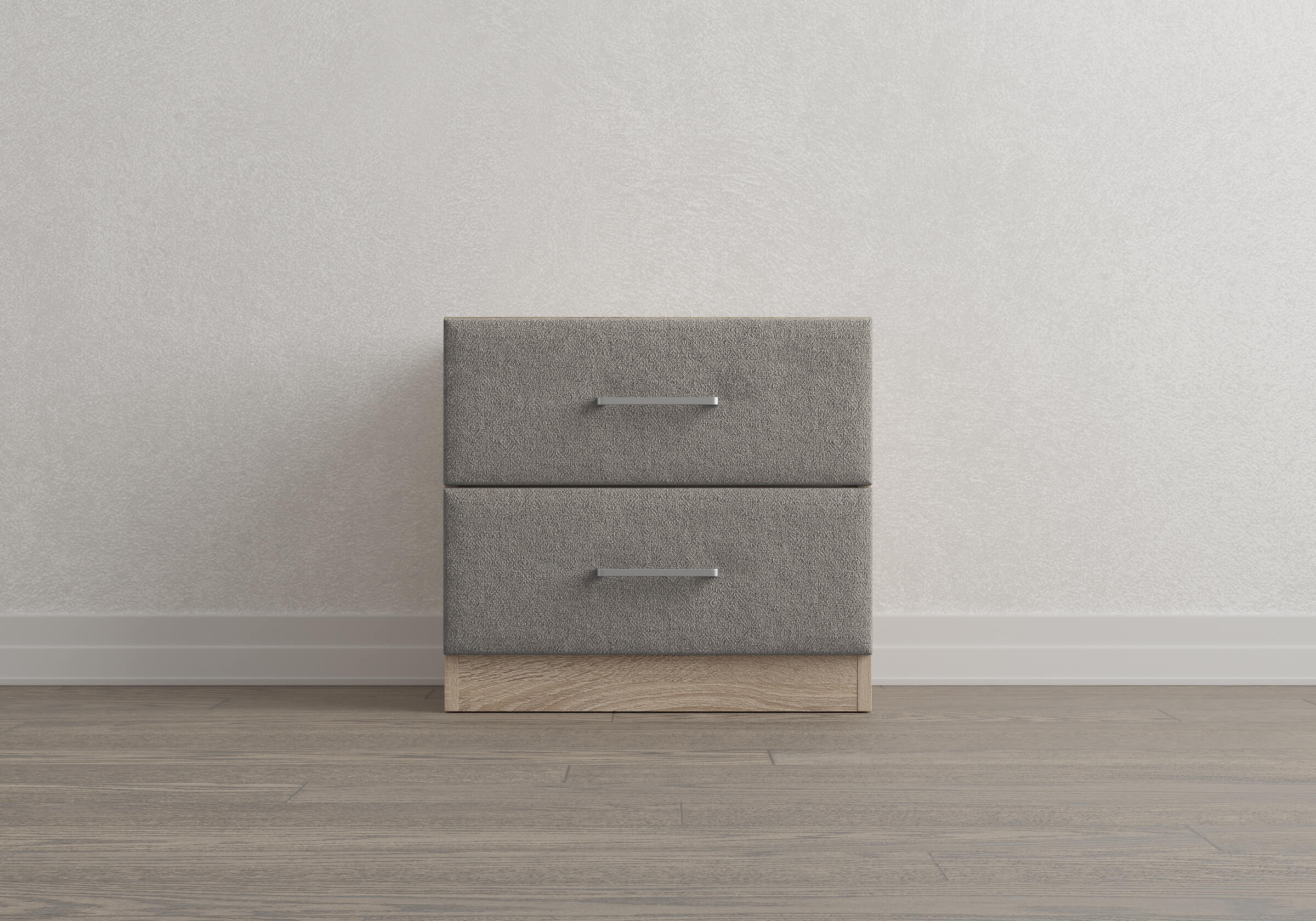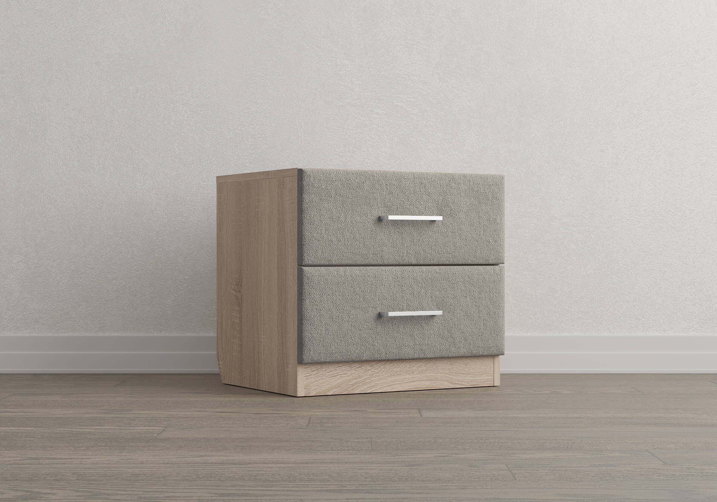 Элегантная комбинированная тумба, сочетающая в себе лаконичность ЛДСП и уют мягких фасадов ящиков, обтянутых тканью. Конструкция тумбы предусматривает два вместительных выдвижных ящика с направляющими скрытого монтажа и доводчиками. Корпус из ЛДСП гарантирует долговечность и устойчивость к механическим повреждениям, а мягкие фасады в ткани и изящные металлические ручки добавят уют. Большое разнообразие текстур и цветовых решений для гармоничной интеграции в любой интерьер.