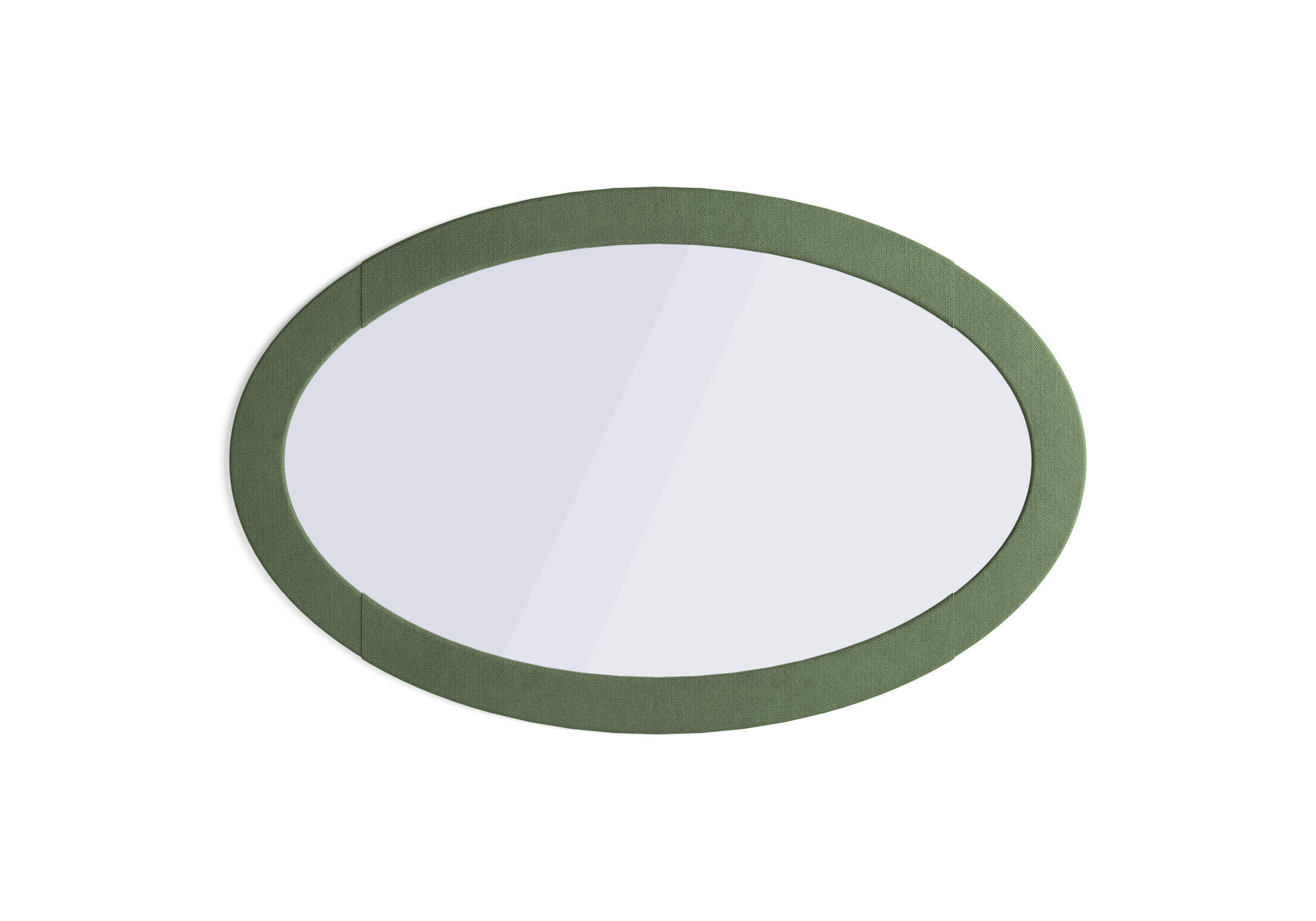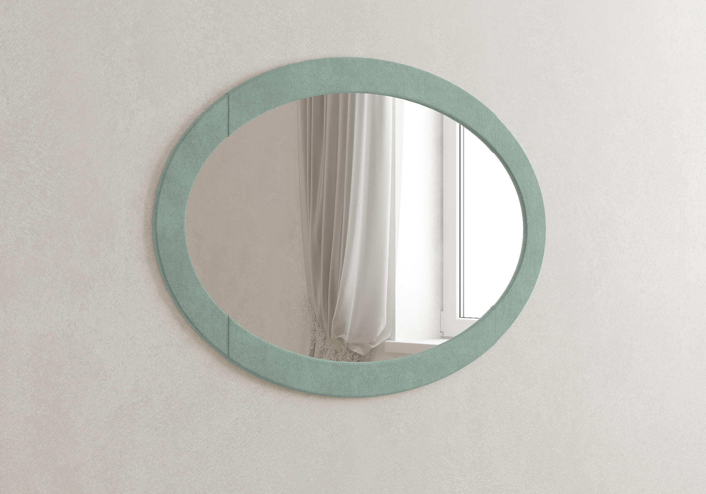 Изящное овальное зеркало в мягкой обивке. Возможно выполнение в различных вариантах цветового исполнения.