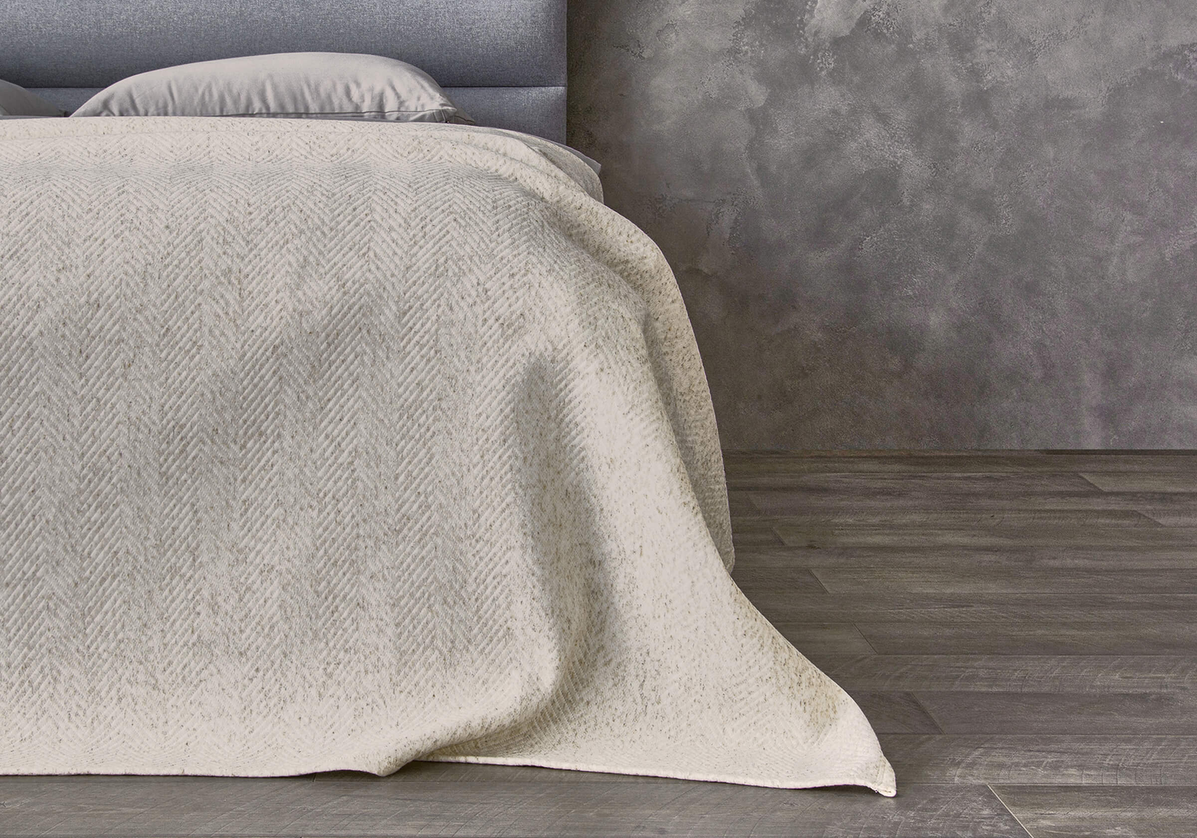Серый меланжевый плед со льном в составе. Мягкий, очень приятный. Большого размера и подходит ко всему: к дивану, кровати, кровати в детской. Уютный. Очень нравится!