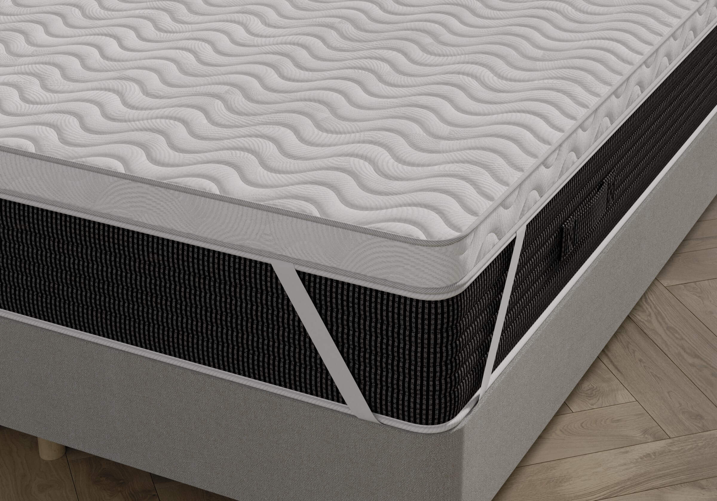 Топпер изготовлен из двух слоев: инновационной пены со свойствами латекса и пены высокой плотности. Данная модель средней жёсткости помогает расслабить напряжённые мышцы, скрывает стыки и неровности. Крепление осуществляется с помощью резинок по четырём углам.
